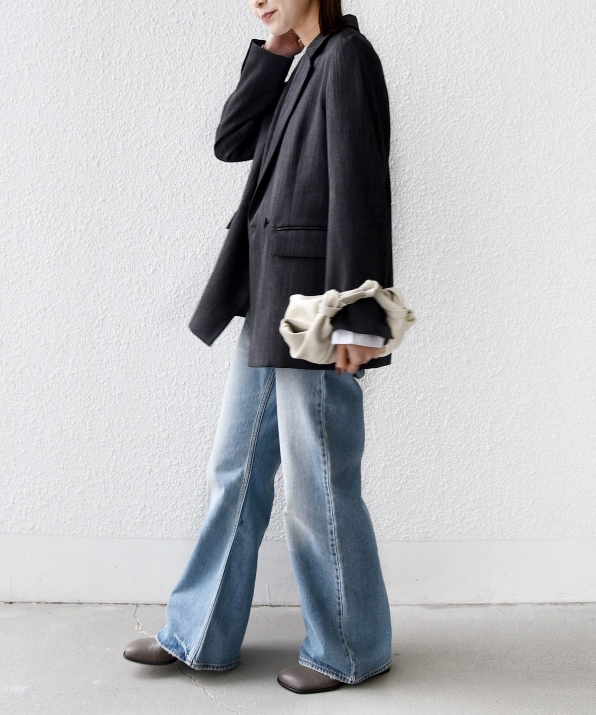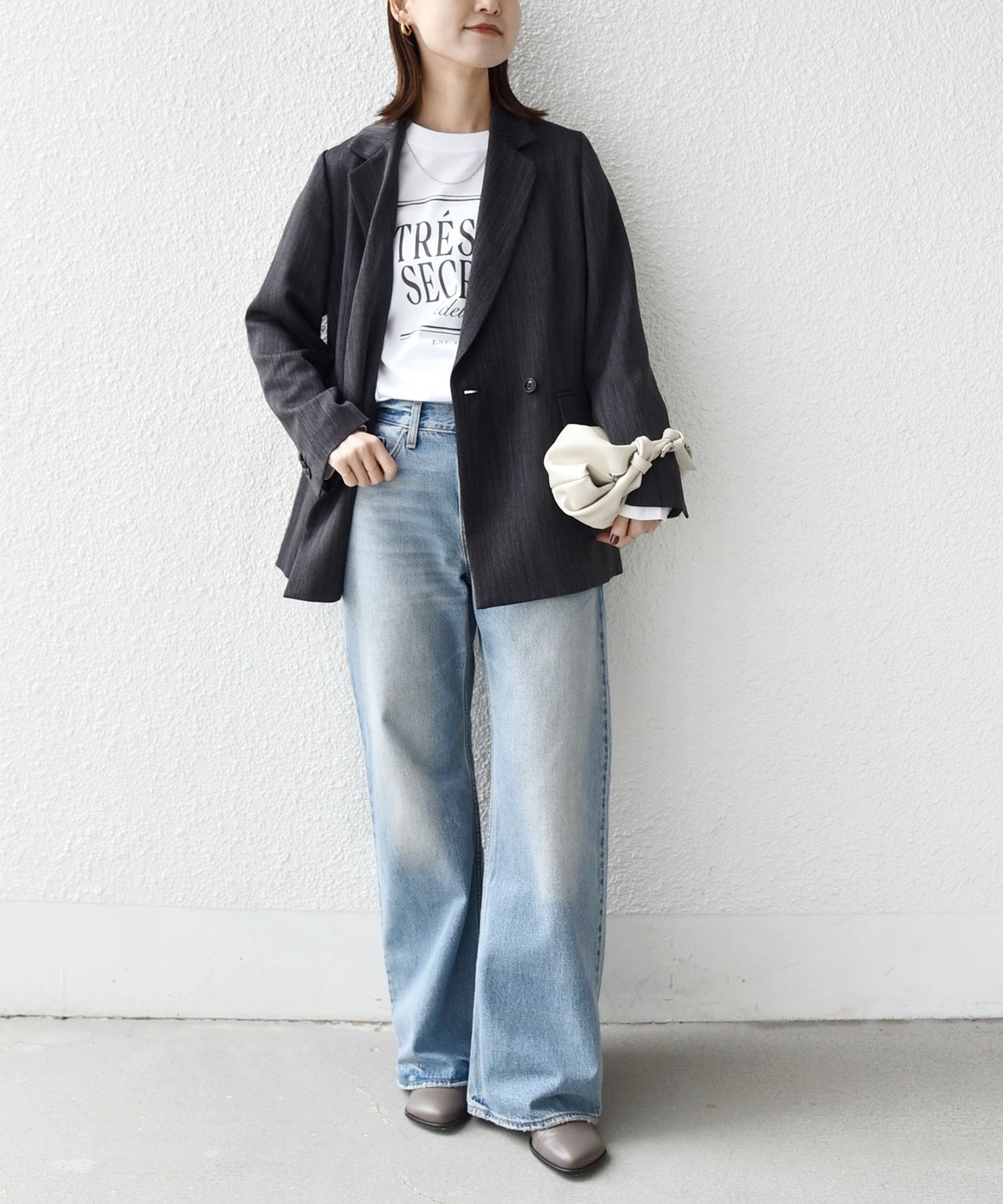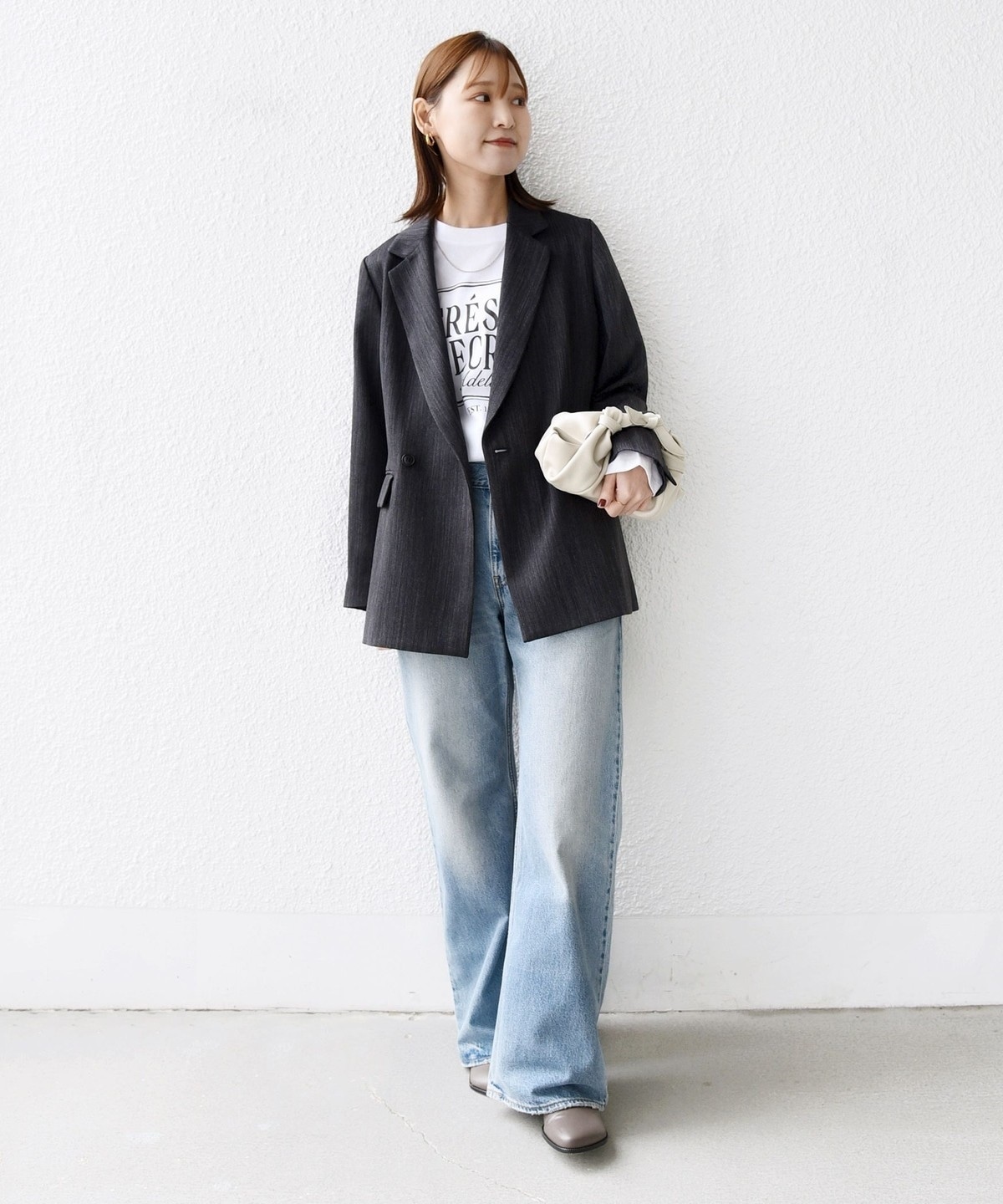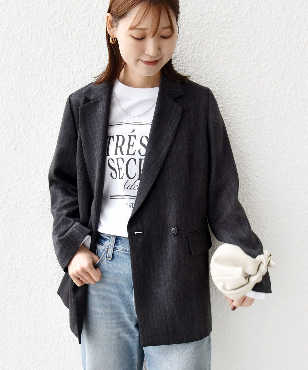 Tシャツやデニムでカジュアルダウンすればこなれたデイリースタイルに。