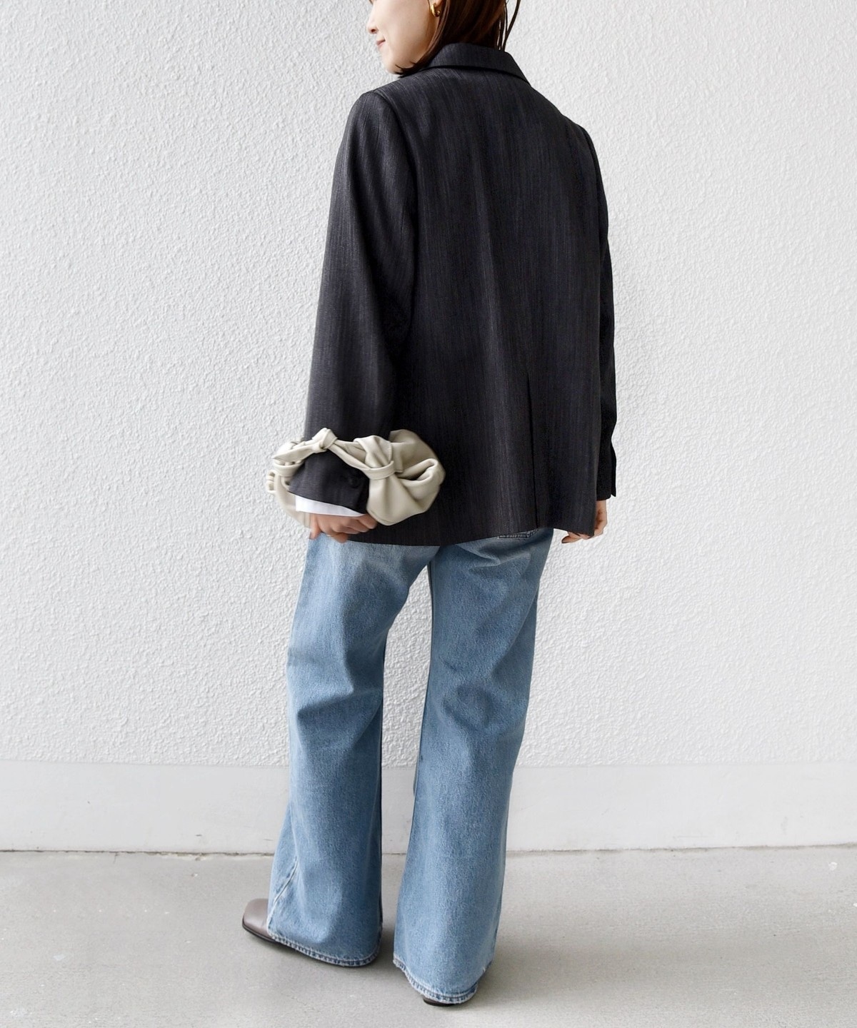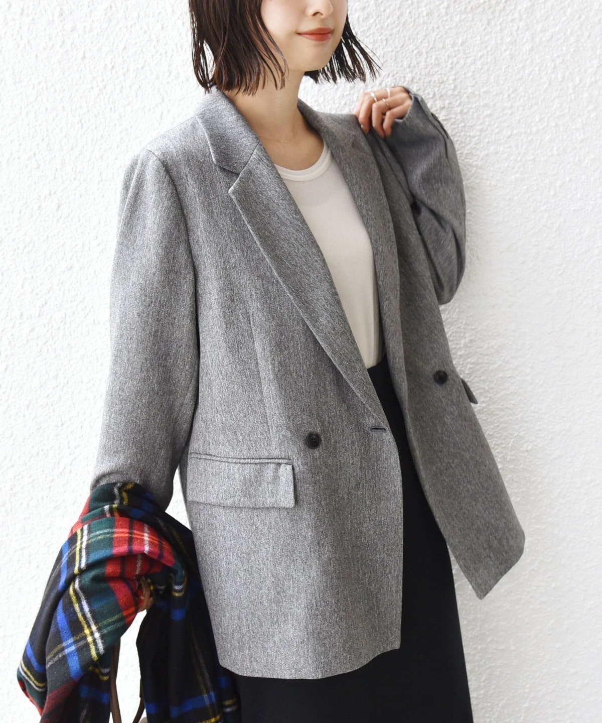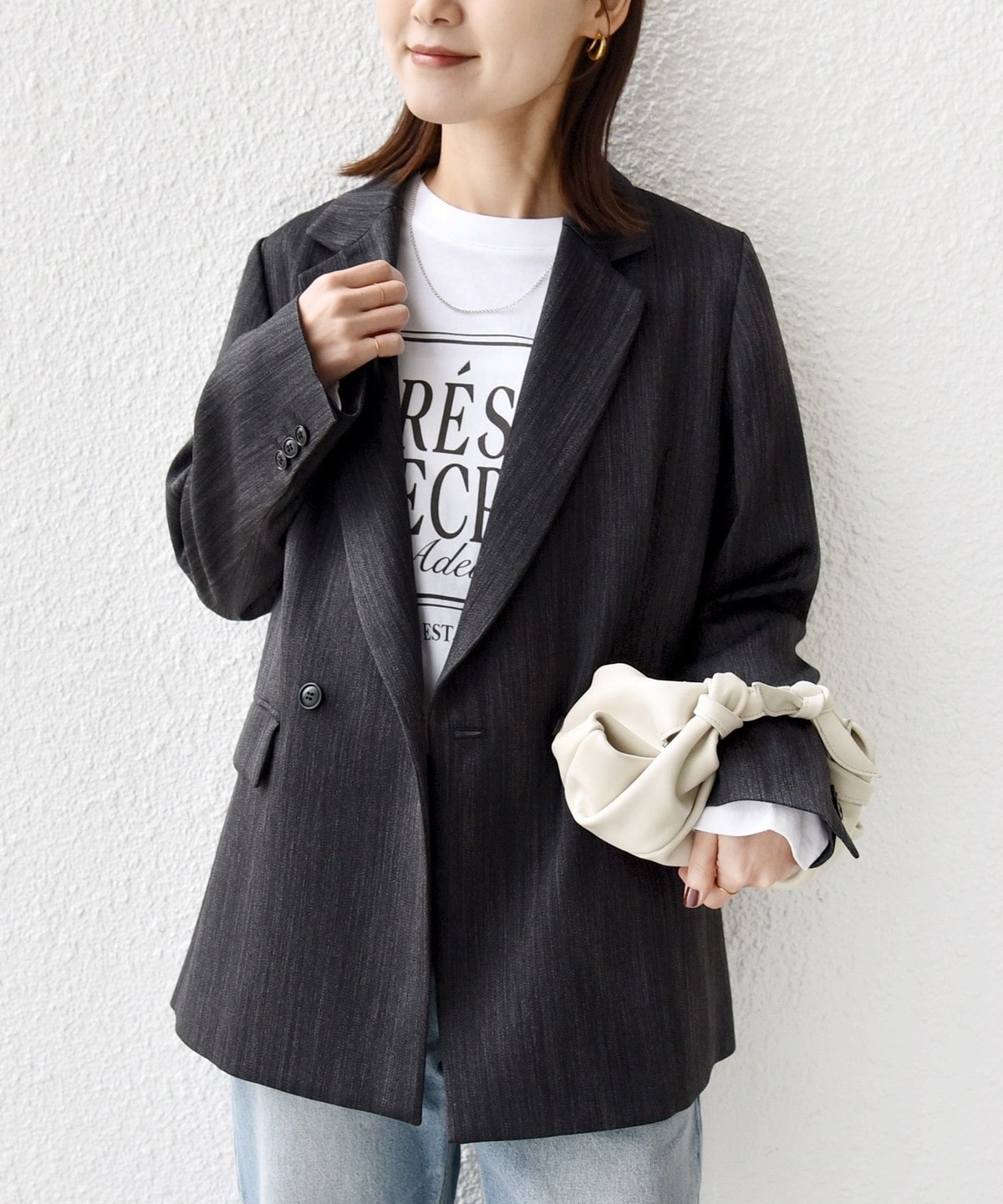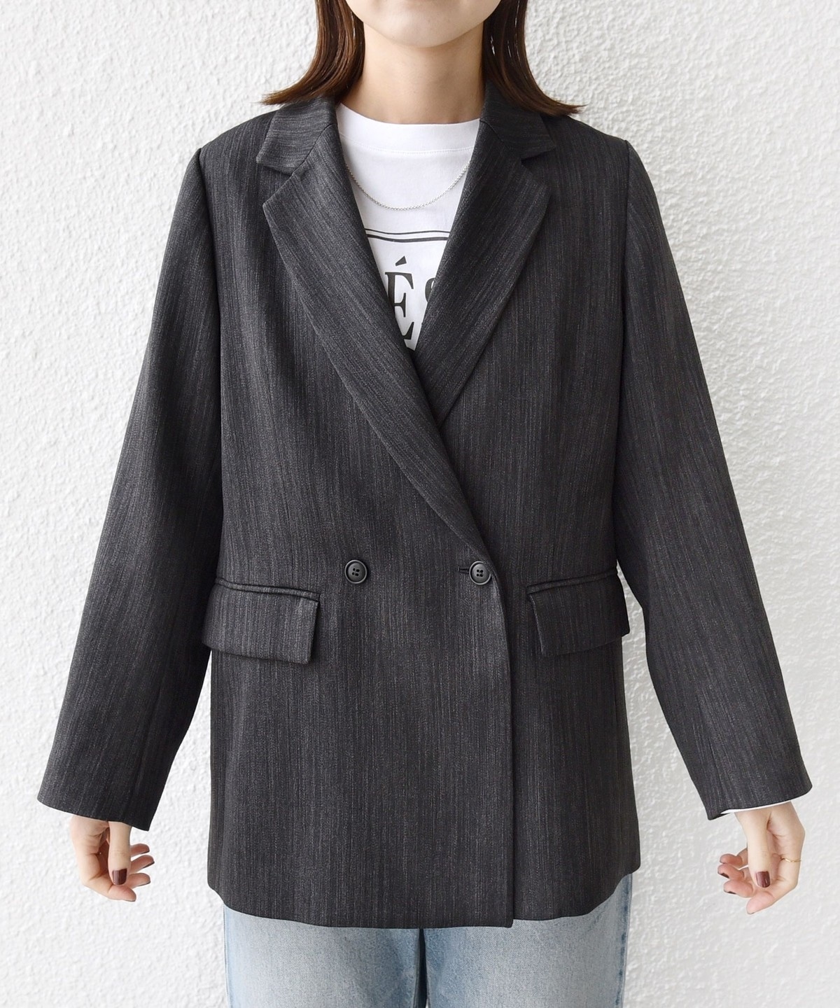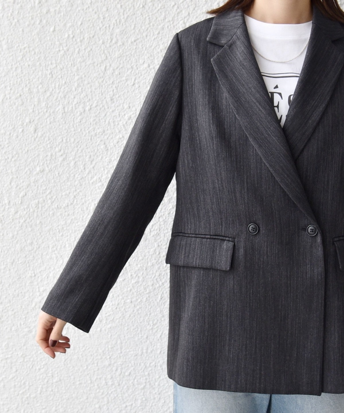 程よくゆったりしたサイズでさらりと羽織れるこなれ感のあるダブルブレストジャケット。
