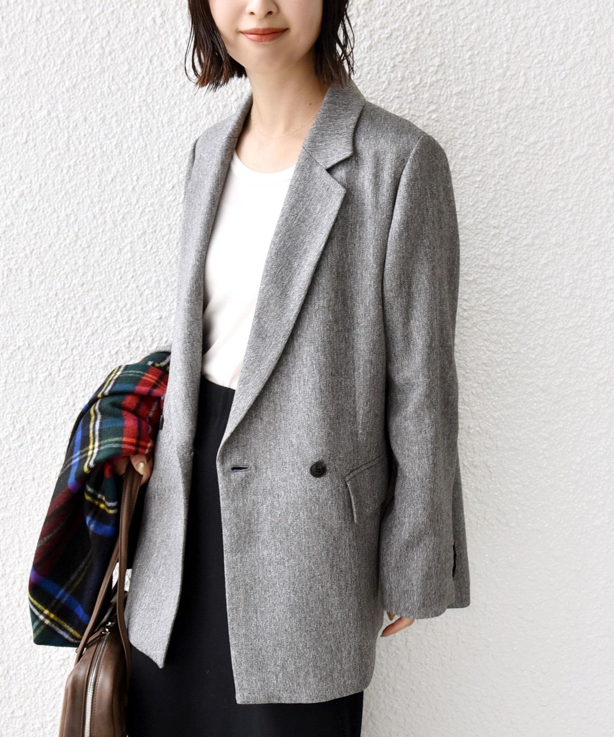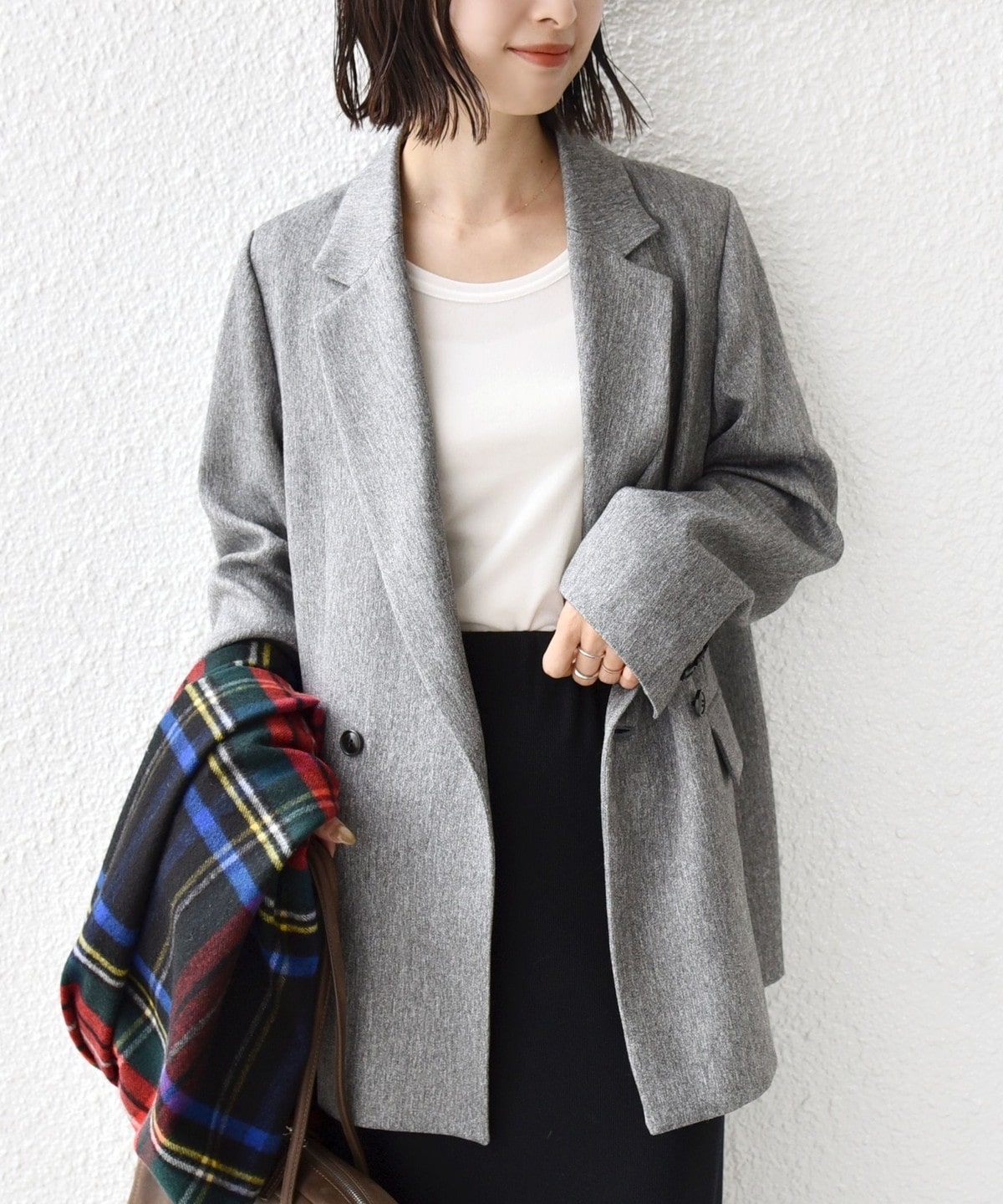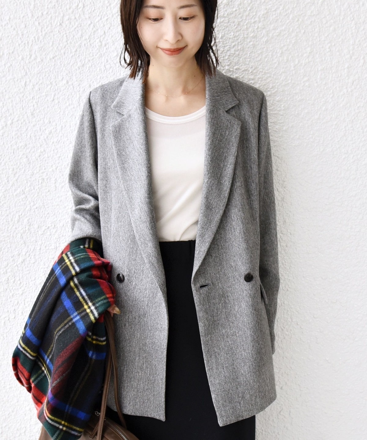 落ち着いた色合いのチェックがマニッシュな女性っぽさを演出。