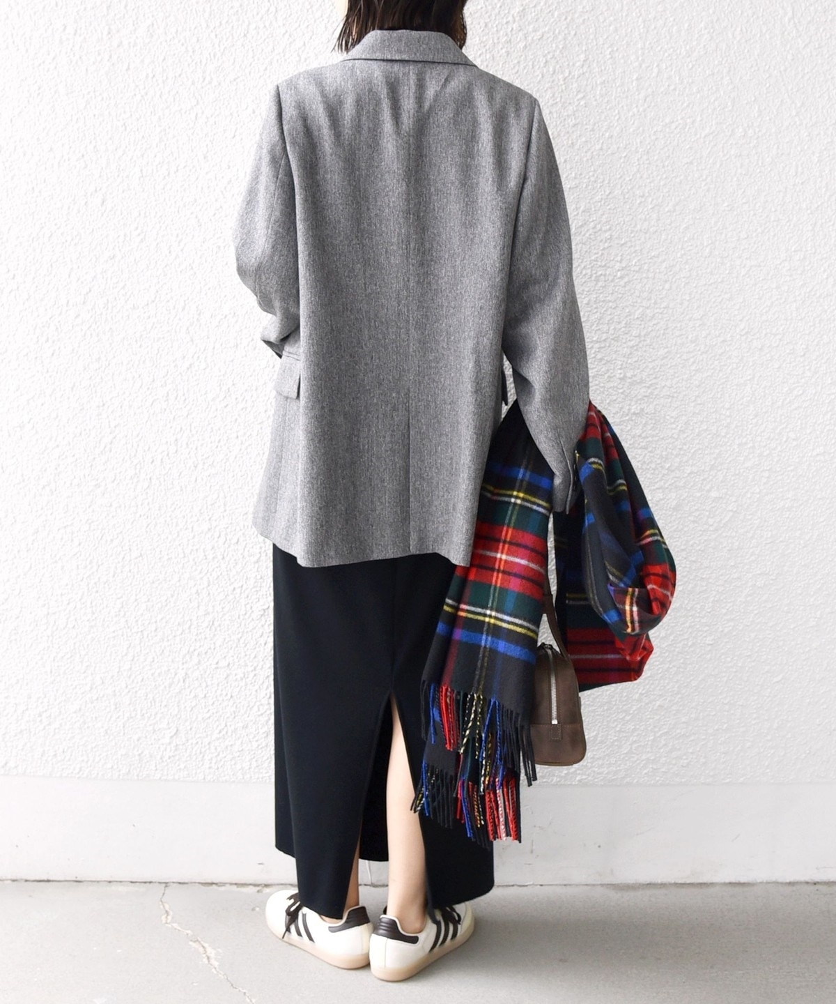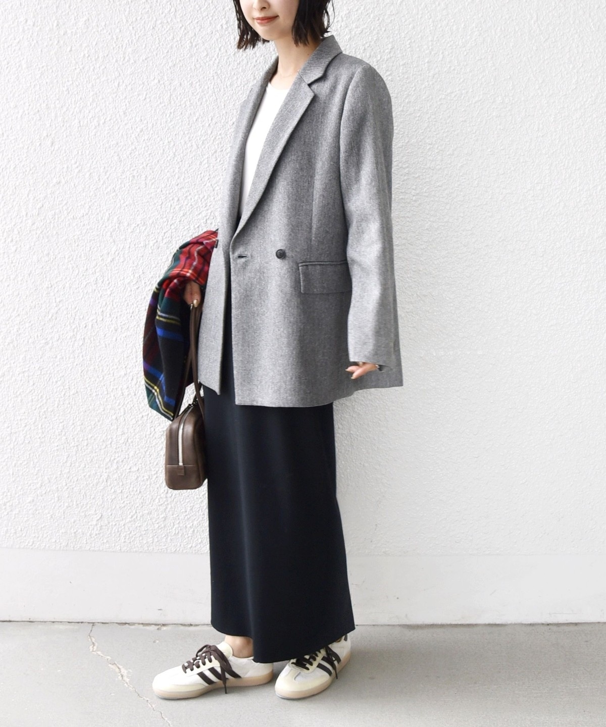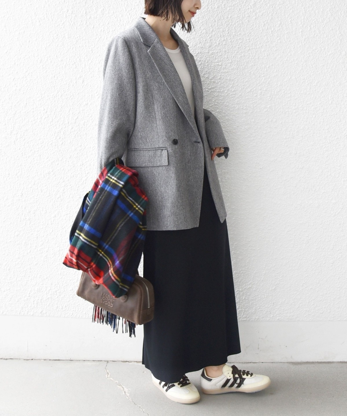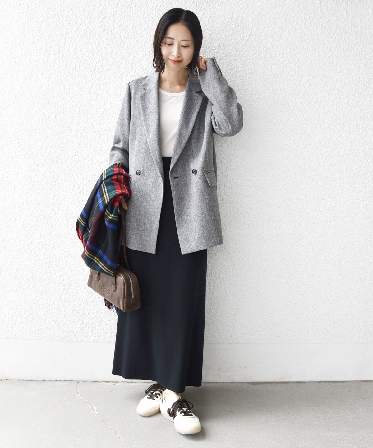 落ち着いた色合いのチェックがマニッシュな女性っぽさを演出。