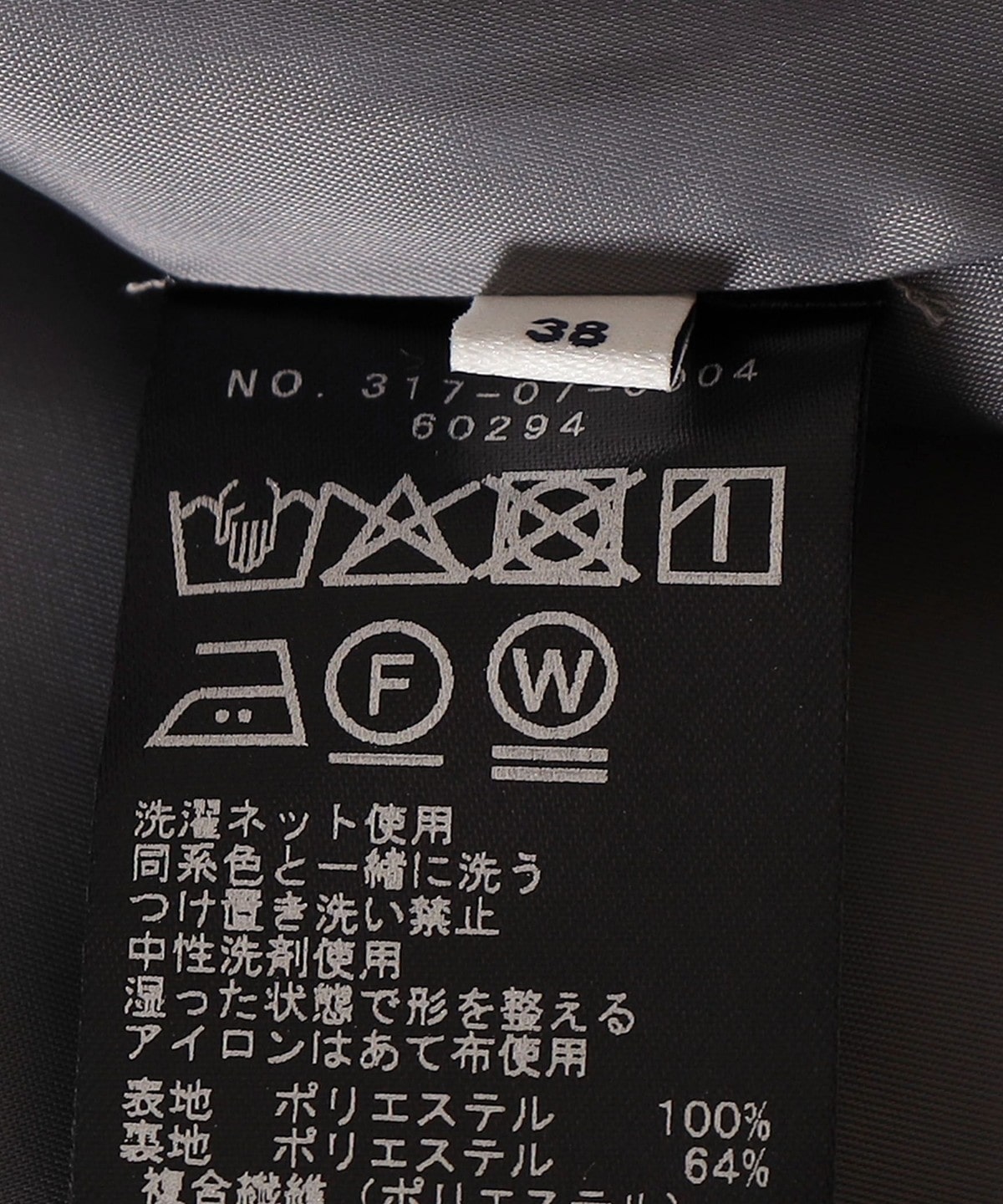 素材:表地(ポリエステル100%)裏地(ポリエステル64%、複合繊維(ポリエステル)36%)