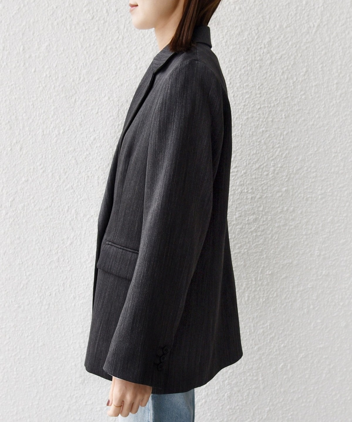 季節の変わりめには軽アウターとして、秋冬にはニットのレイヤーで長いシーズン気合わせを楽しめるジャケットです。