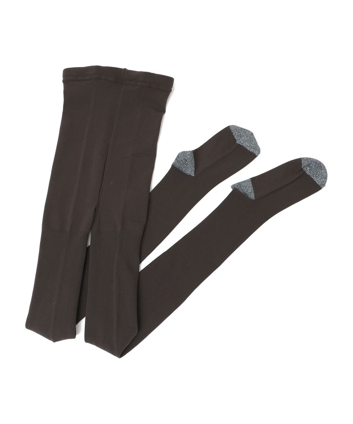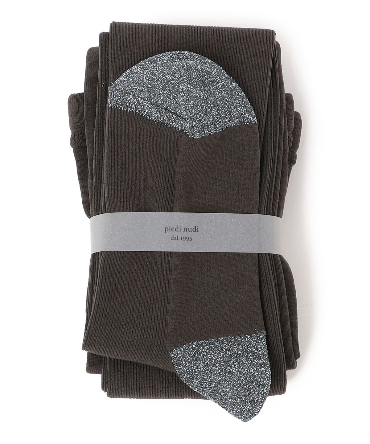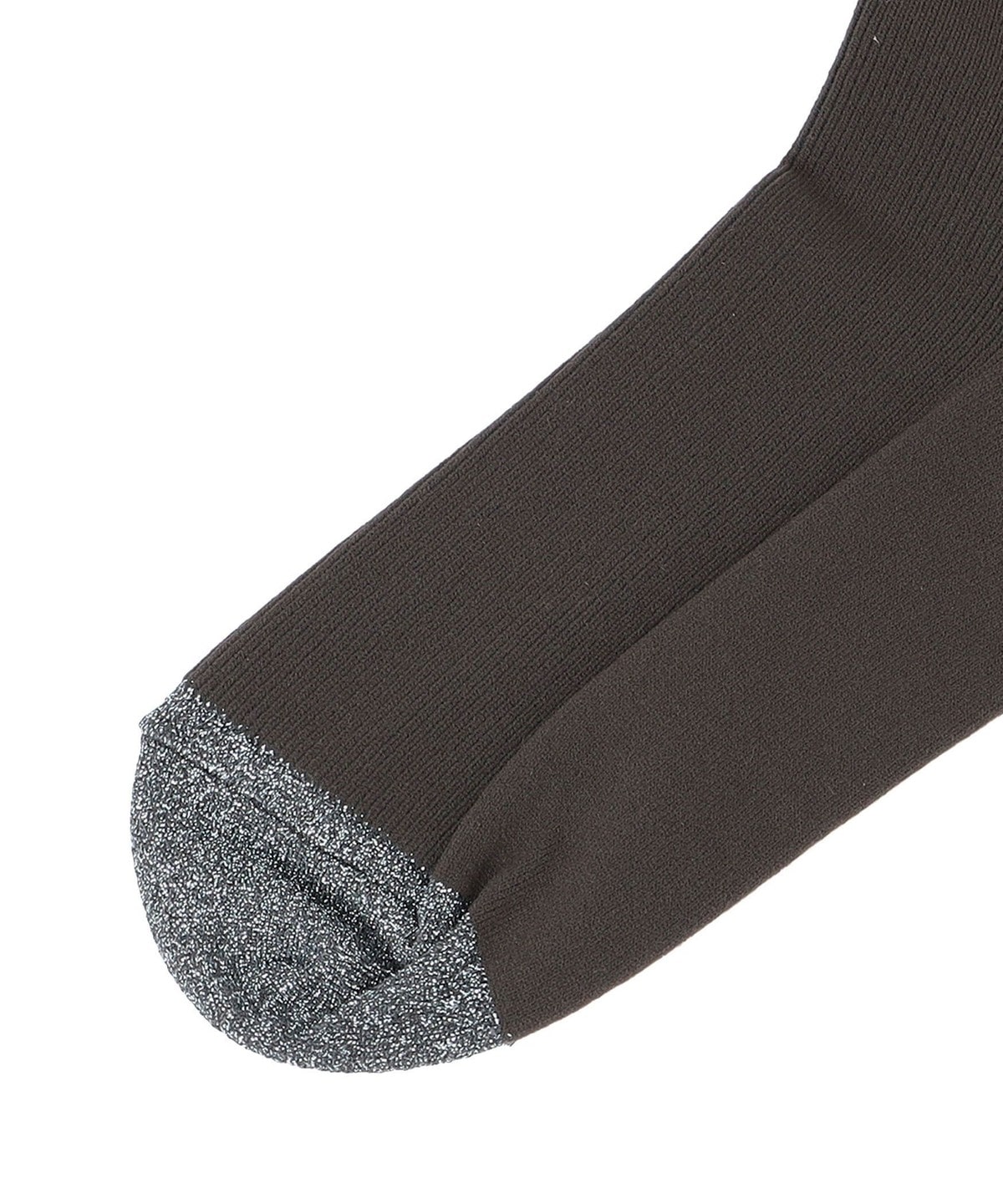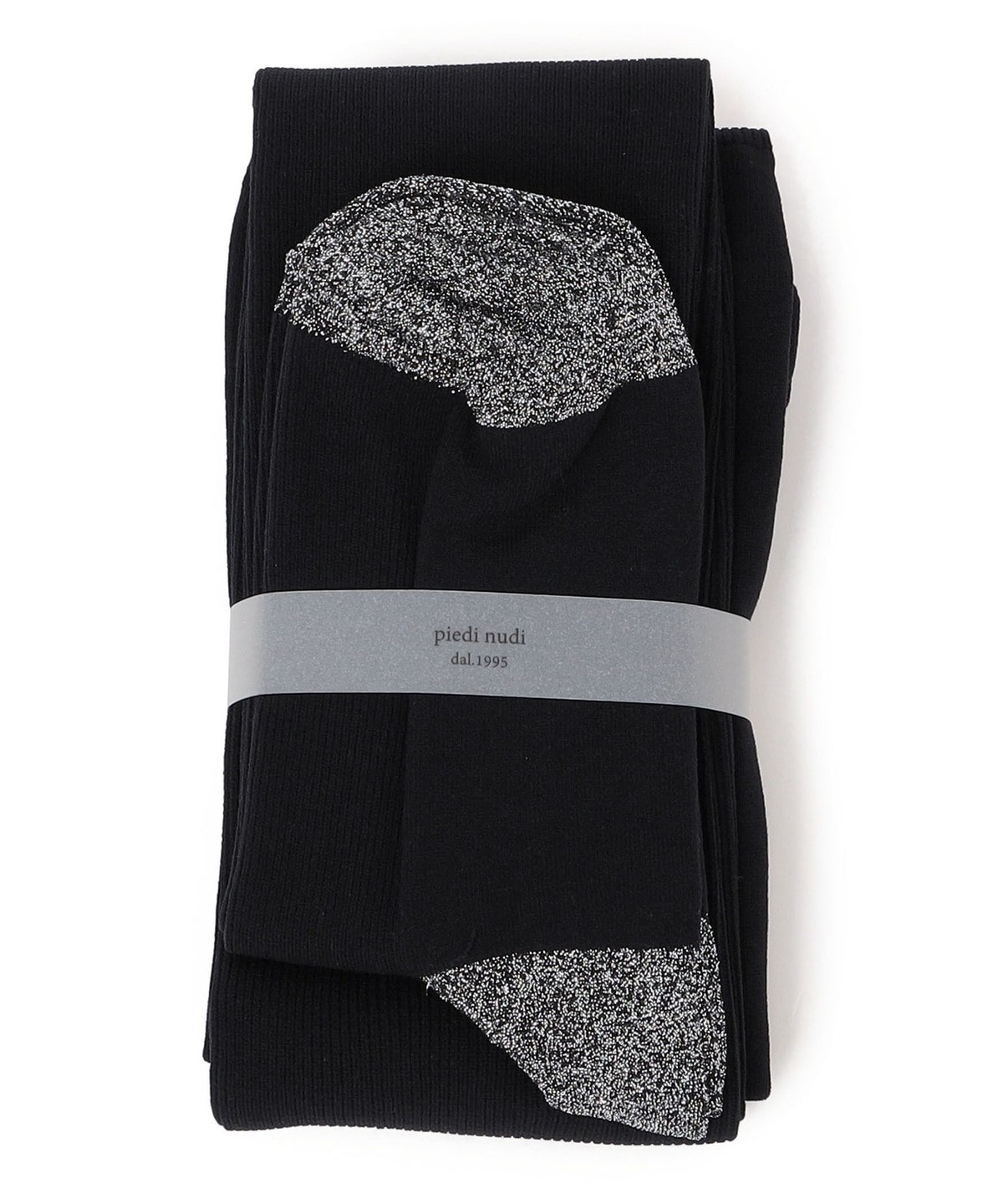 つま先とカカトはラメ糸で切り替えてシンプルなデザインが多いタイツにアクセントを加えています。