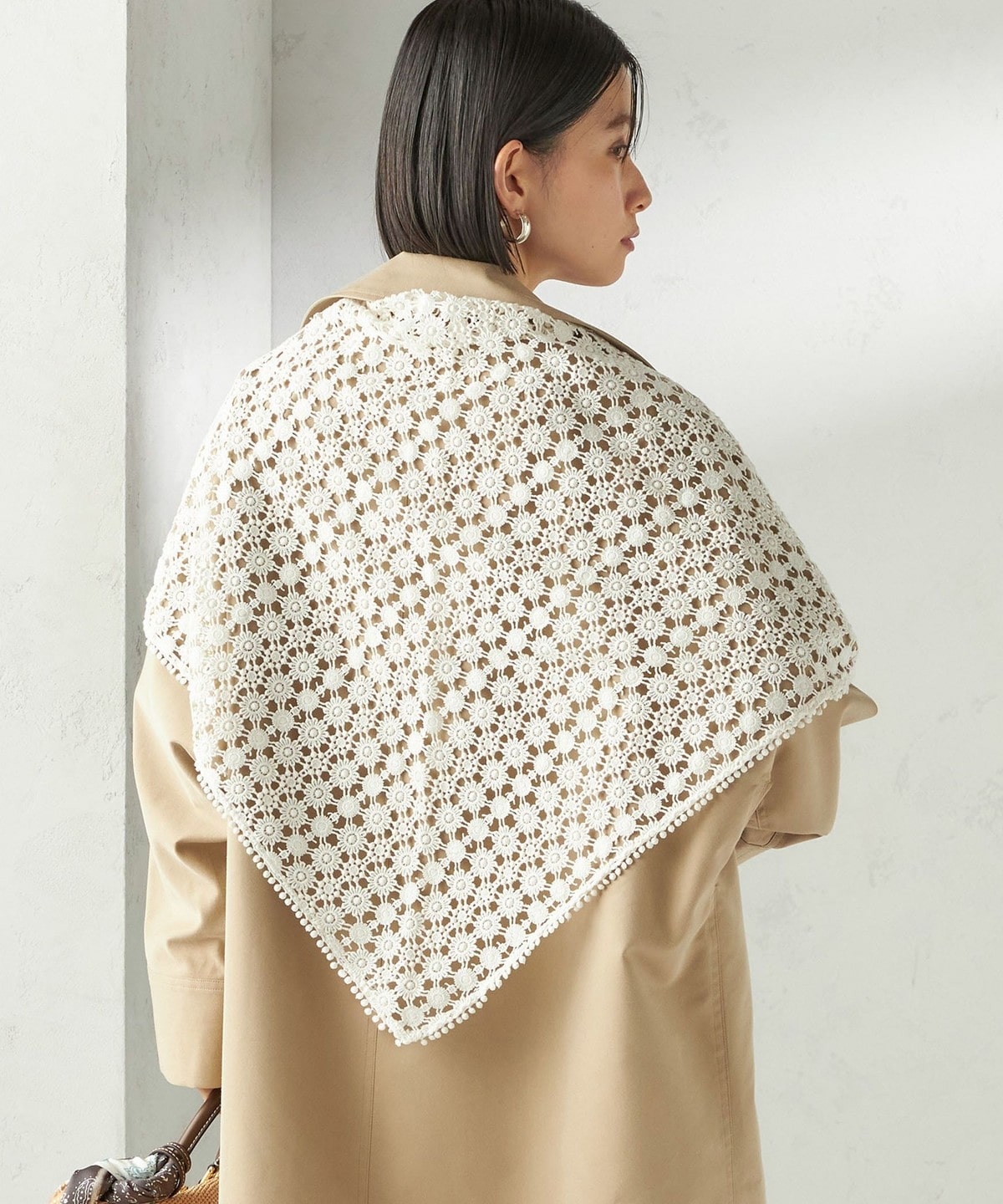 スタイリングを華やかにするSHIPS別注の三角レーススカーフ
