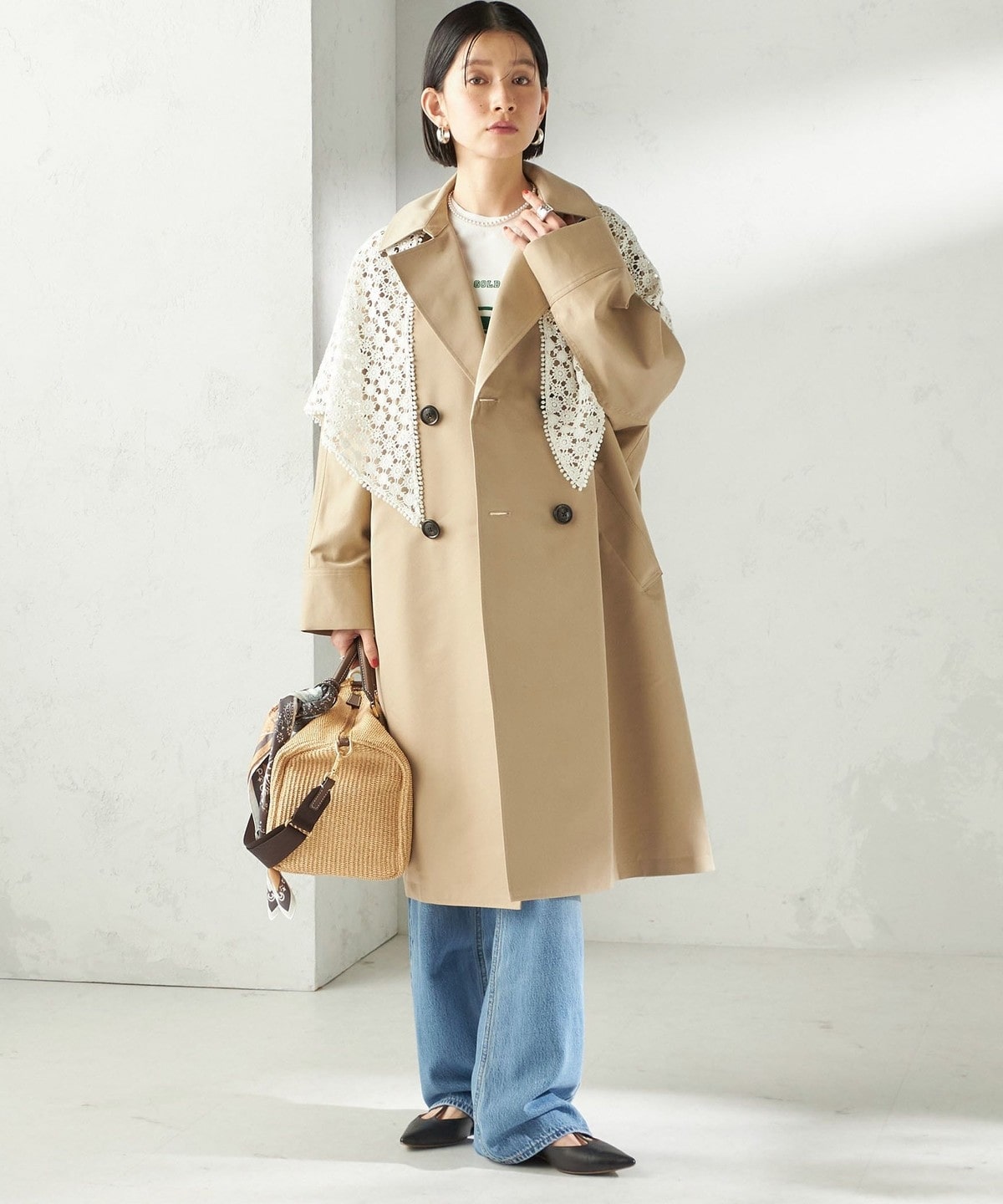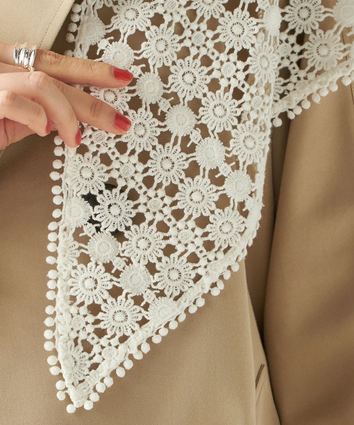 トレンチコートやジャケットといったマニッシュなスタイリングにプラスすることで、レースの繊細な甘さが加わり、一気に着こなしがクラスアップします。
