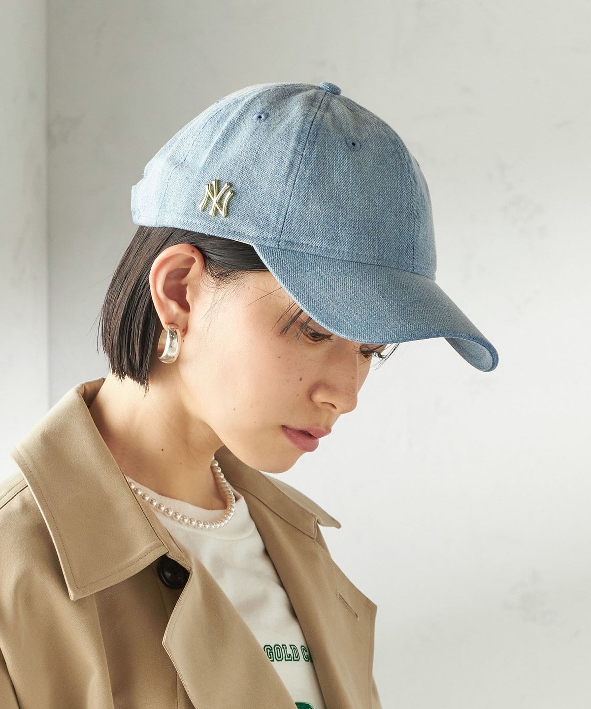 サイドにキラッと光るロゴは、大人の方でもかぶりやすいようにきれいめなゴールドで仕上げました。