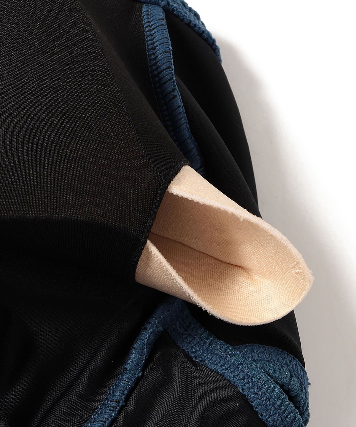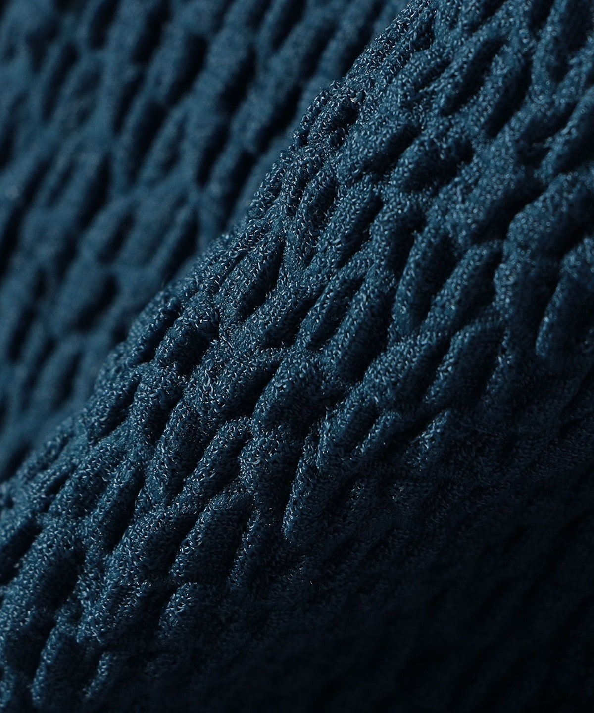 ポコポコした表面感のある素材で作ったワンピース型の水着。