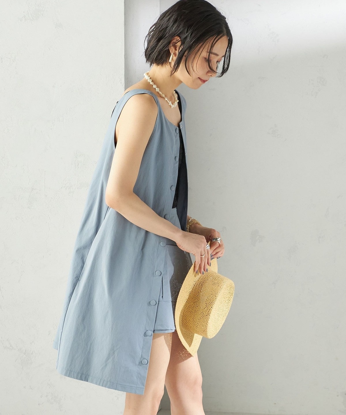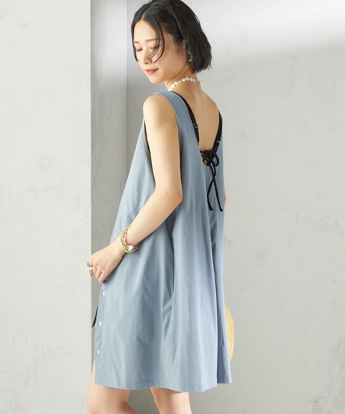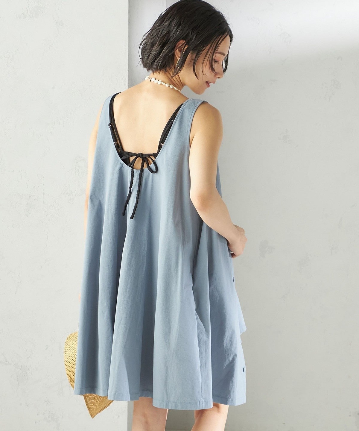 水着の上にさっと着用できるミニワンピース。