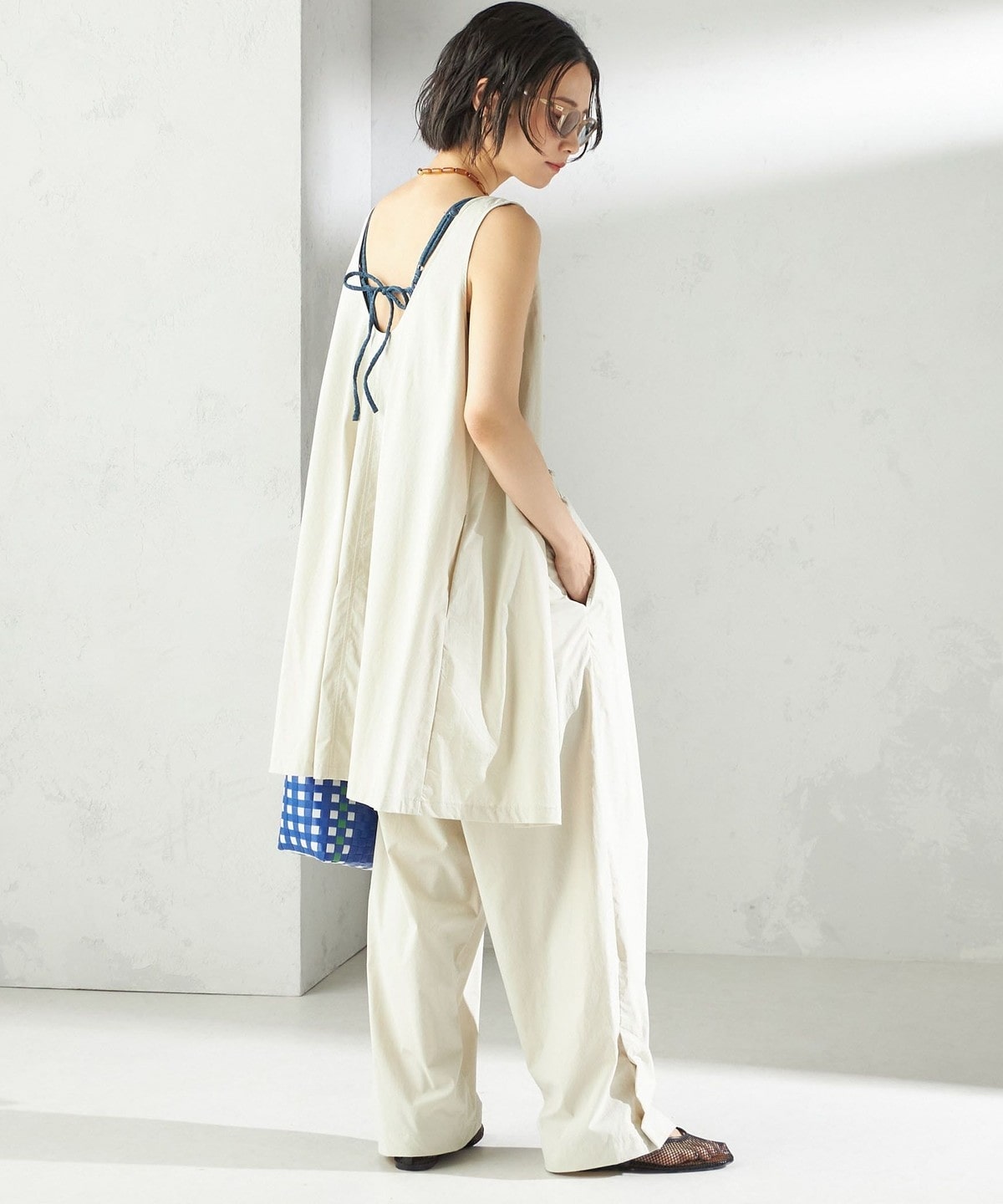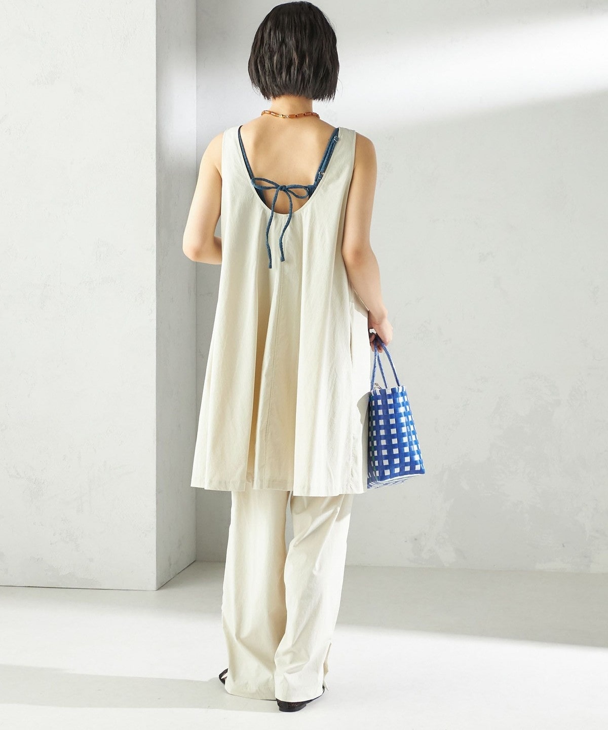 前後2WAYで着用でき、プールや海水浴などのレジャーシーンではもちろん、タウンユースとしても着やすいデザインです。