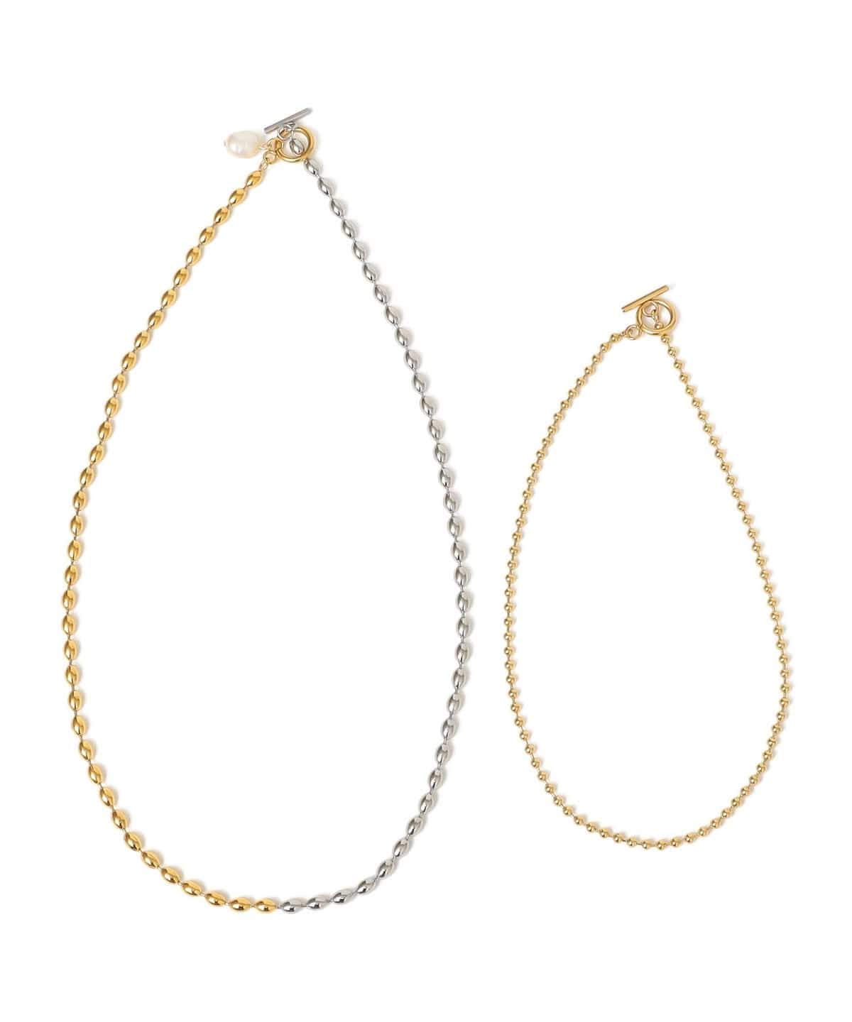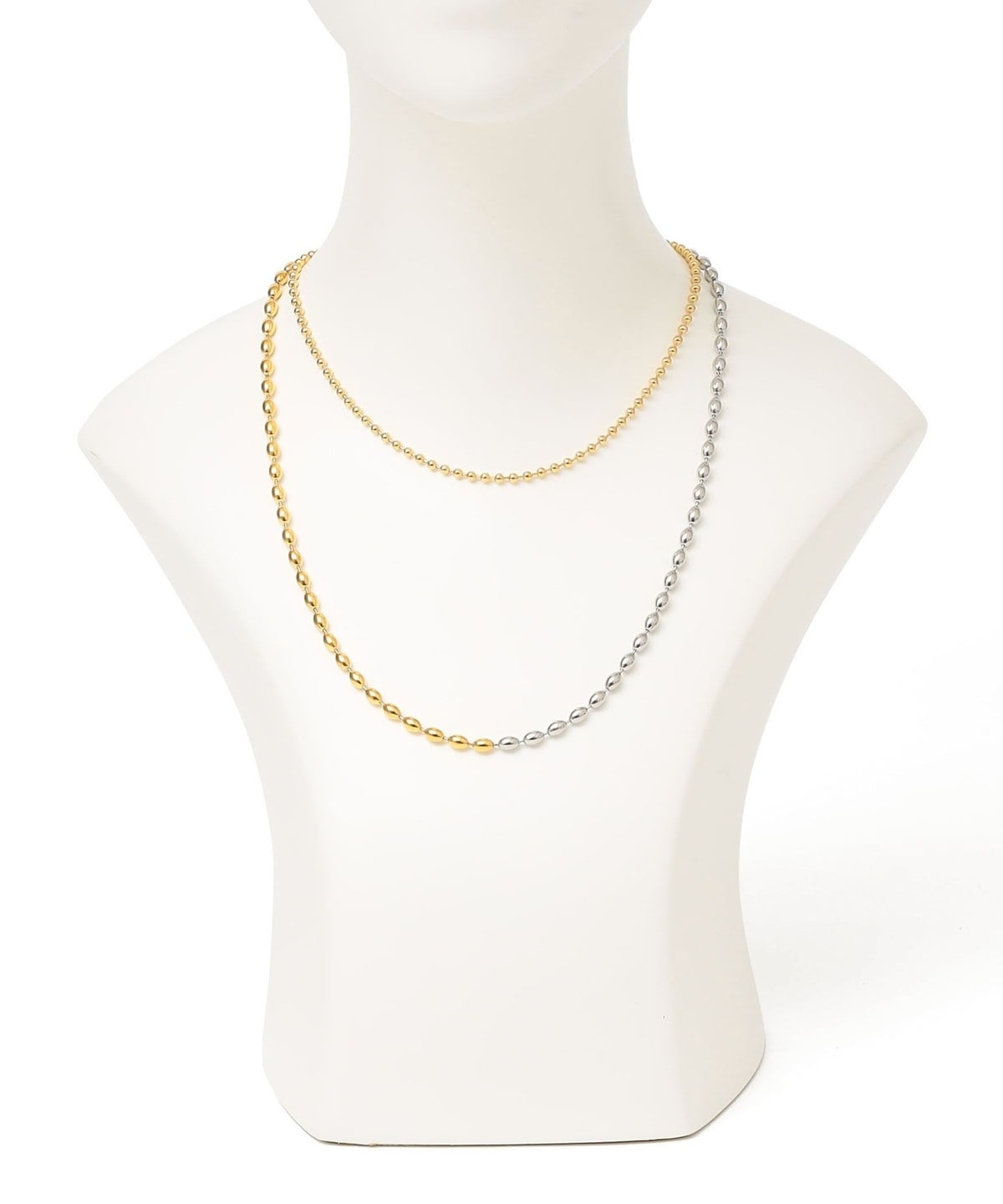シルバーとゴールドのボールチェーンを使用した2連のネックレスです。