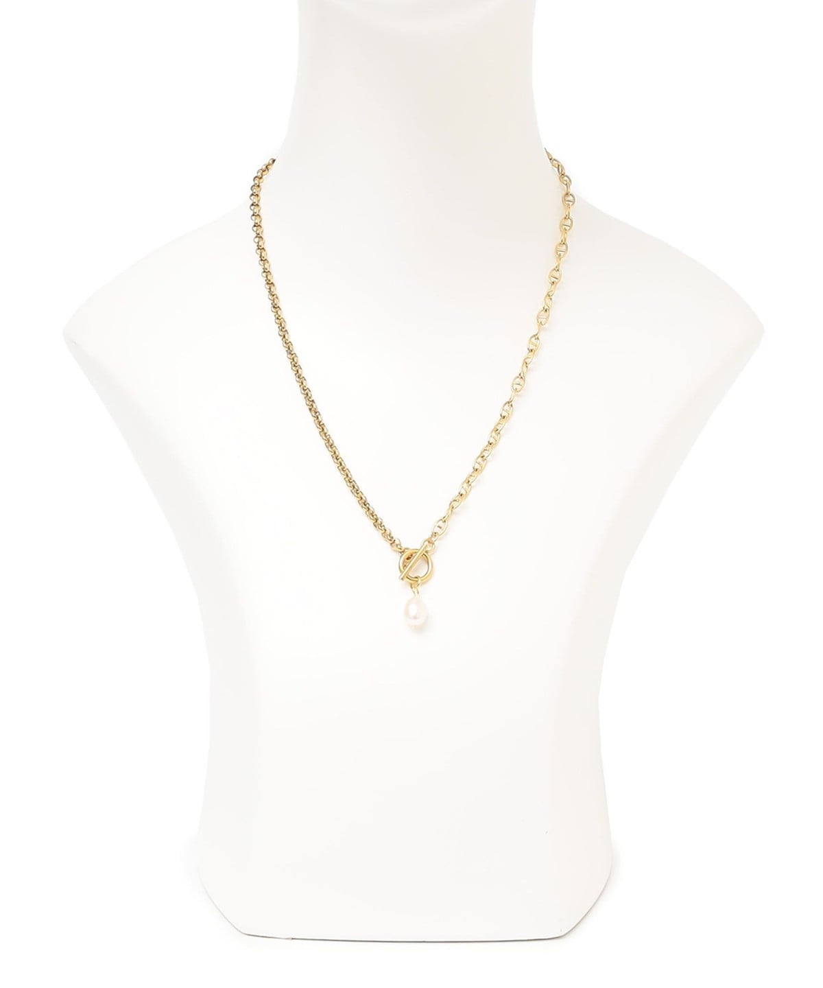 2種類のチェーンを使用しつける位置によって雰囲気の違いを楽しめるネックレスです。