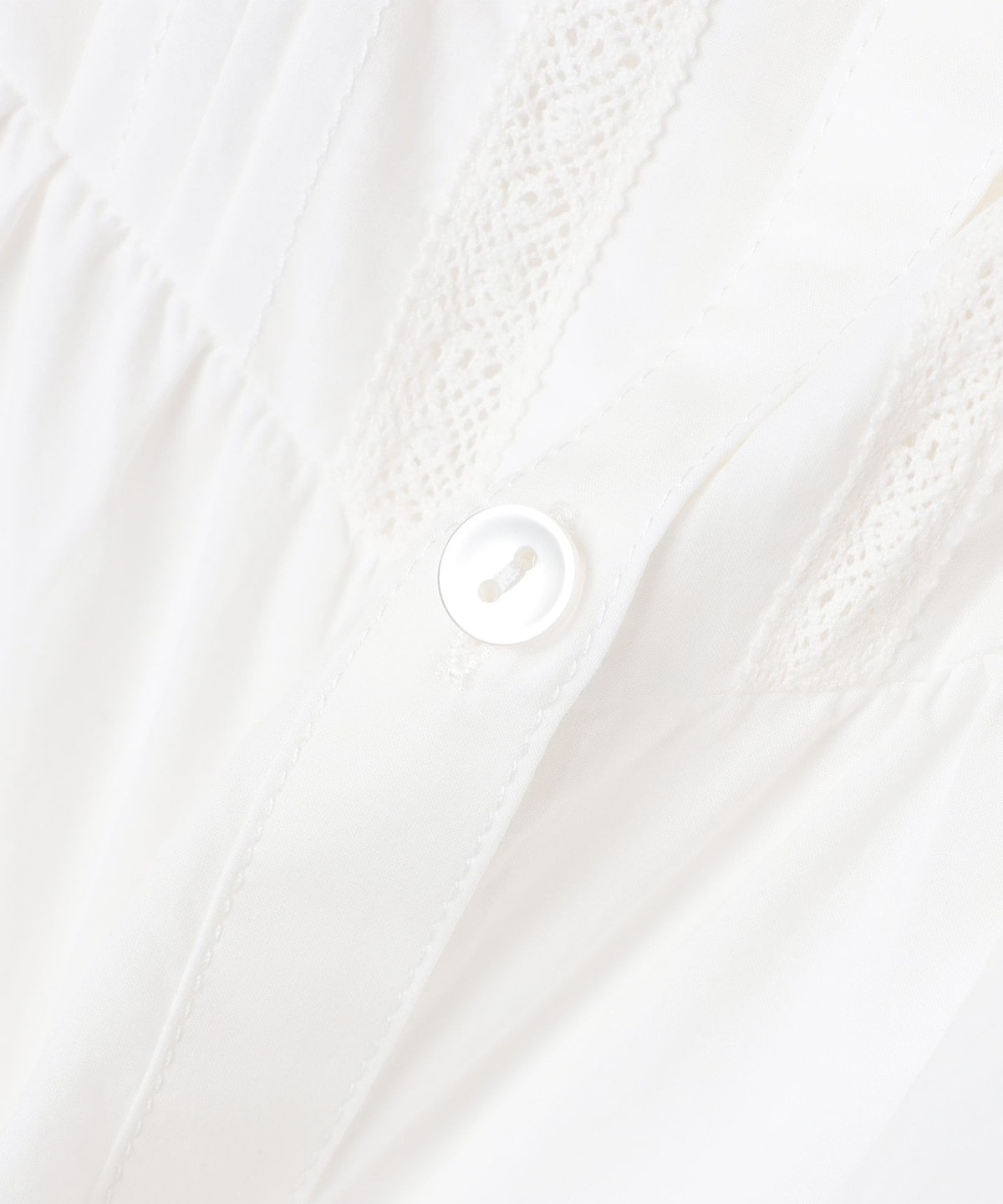 袖口、襟元にピンタックとレースをあしらった、女の子らしい上品なデザインが特徴。