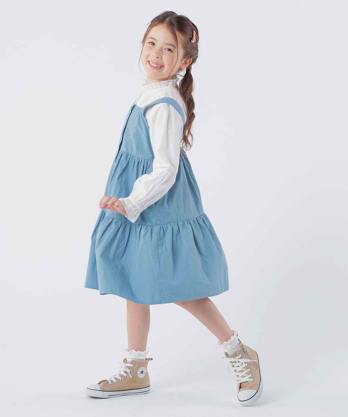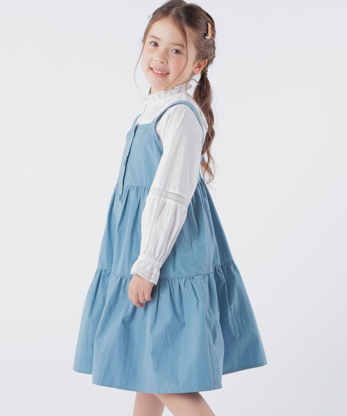 袖口、襟元にピンタックとレースをあしらった、女の子らしい上品なデザインが特徴。