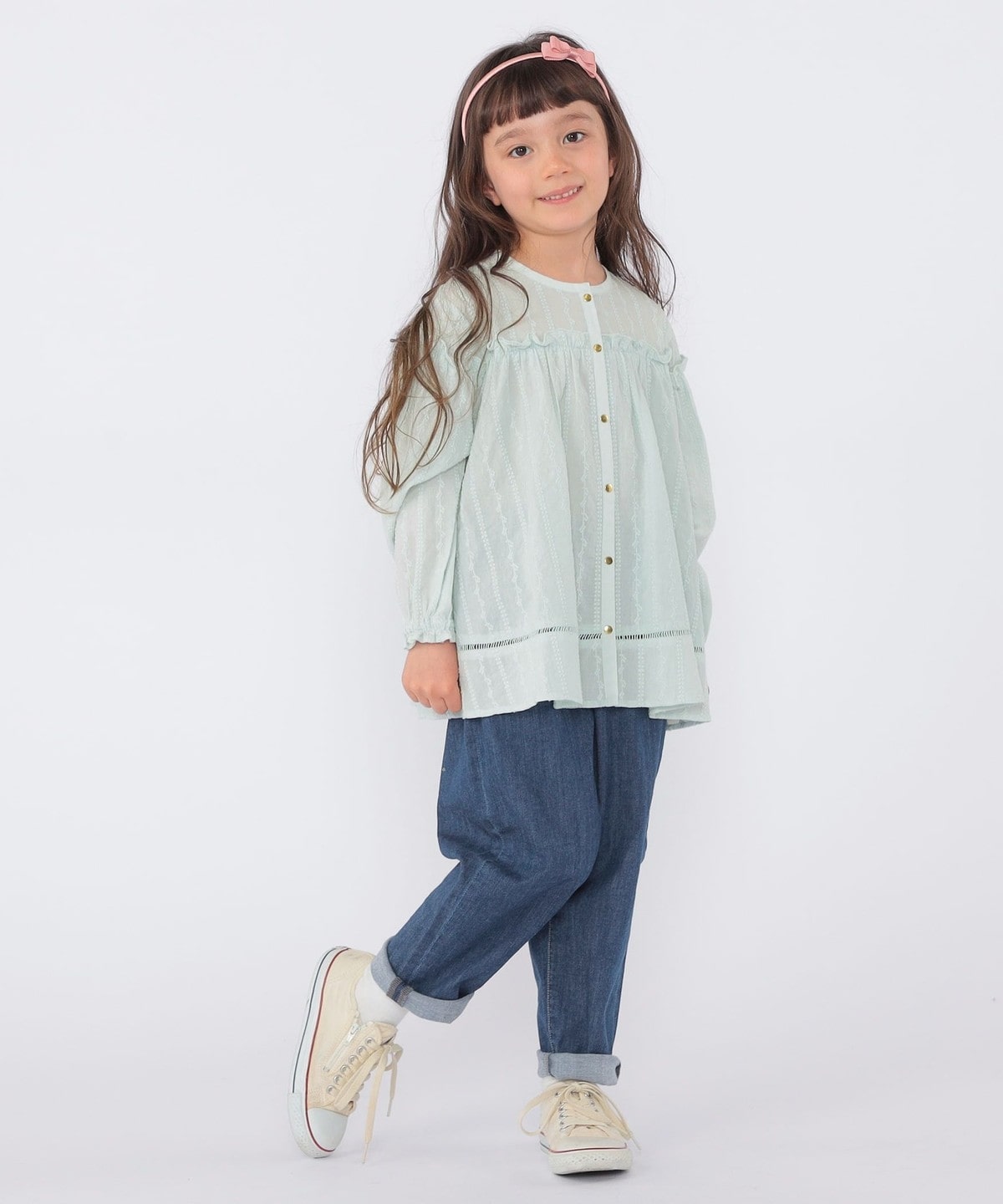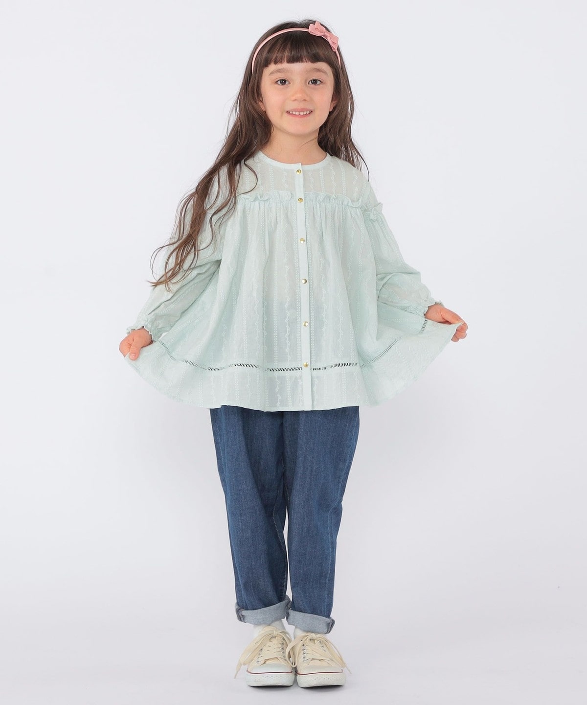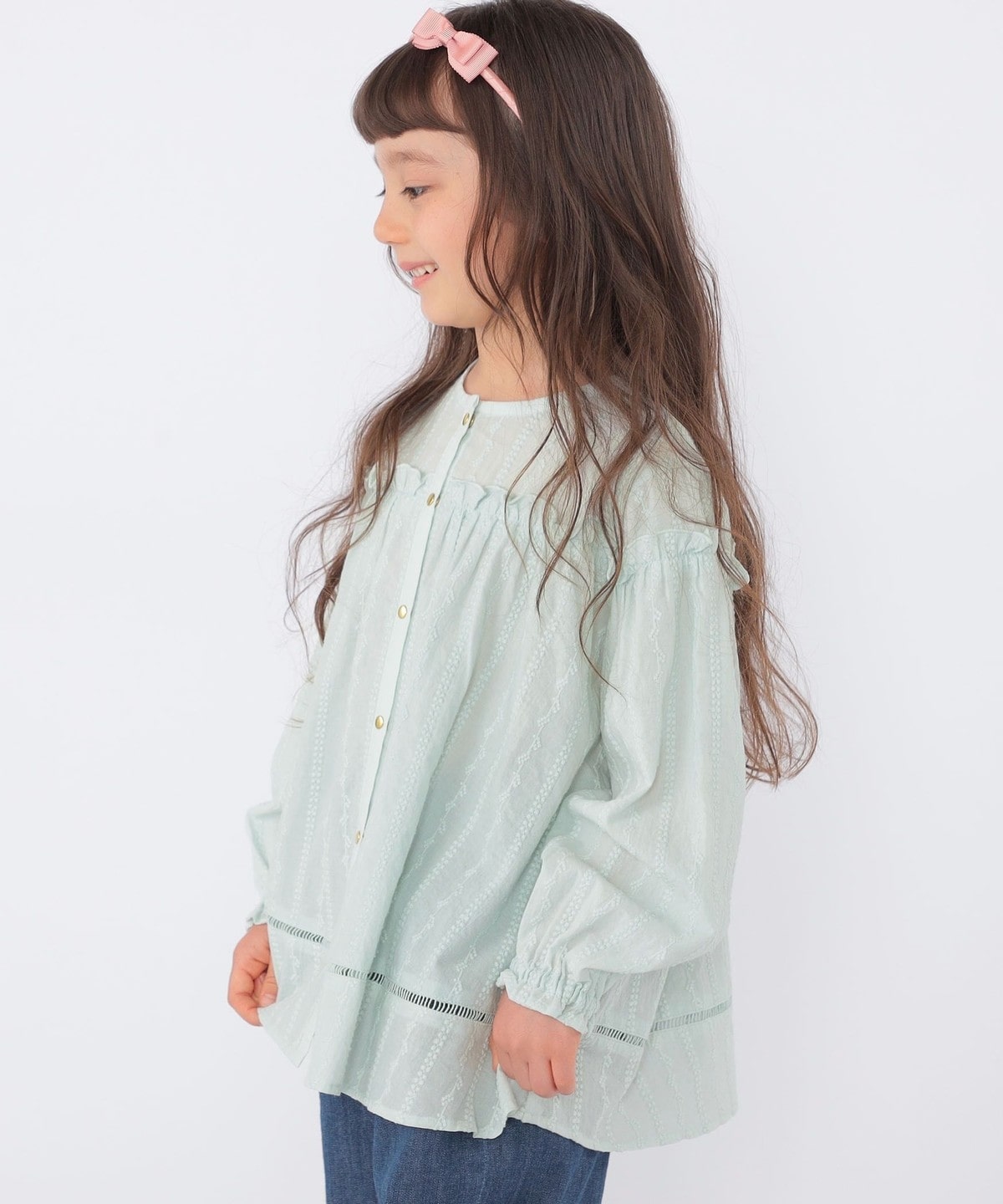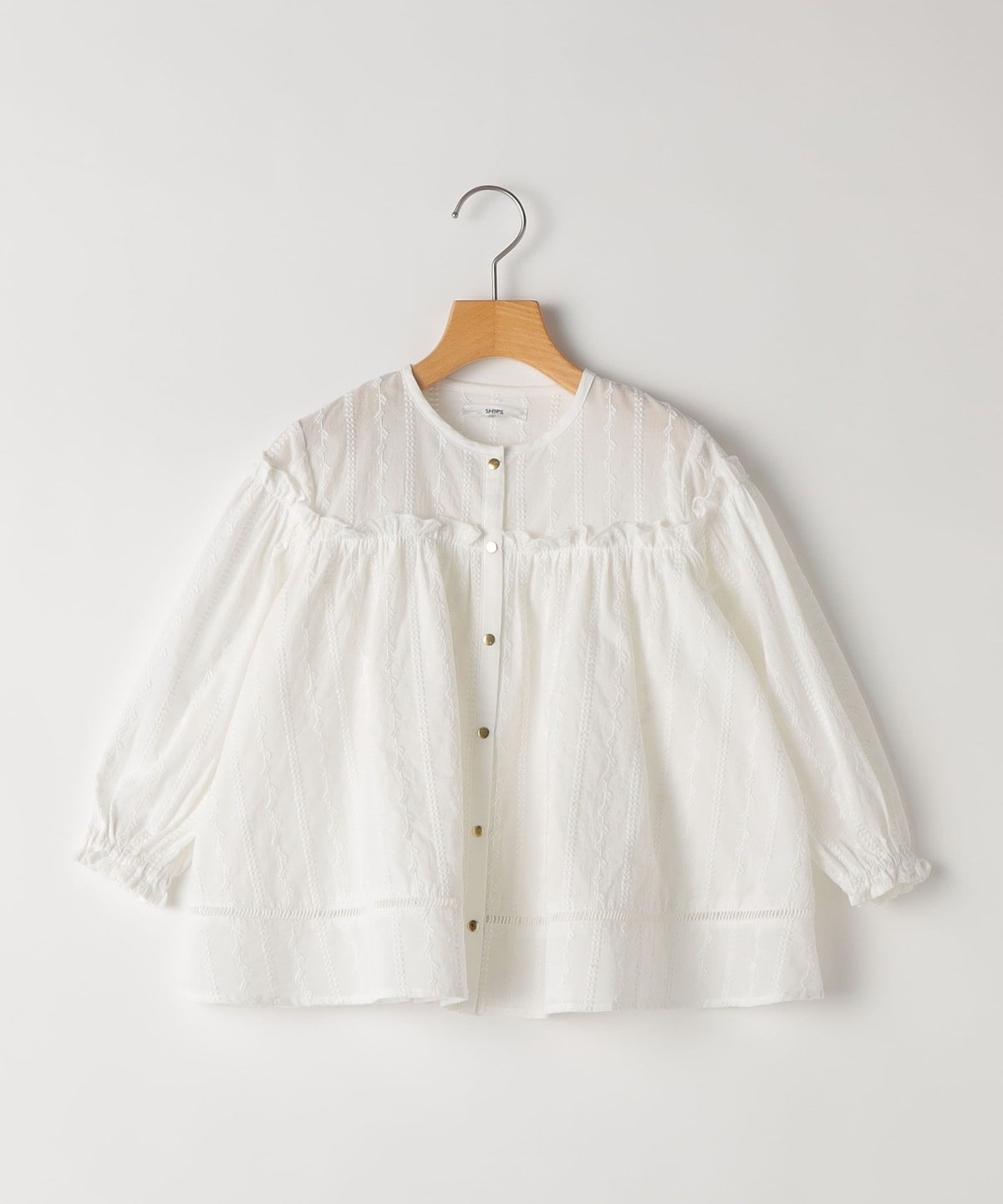 SHIPS KIDS:100〜130cm / ギャザーフリル 刺繍 ブラウス
