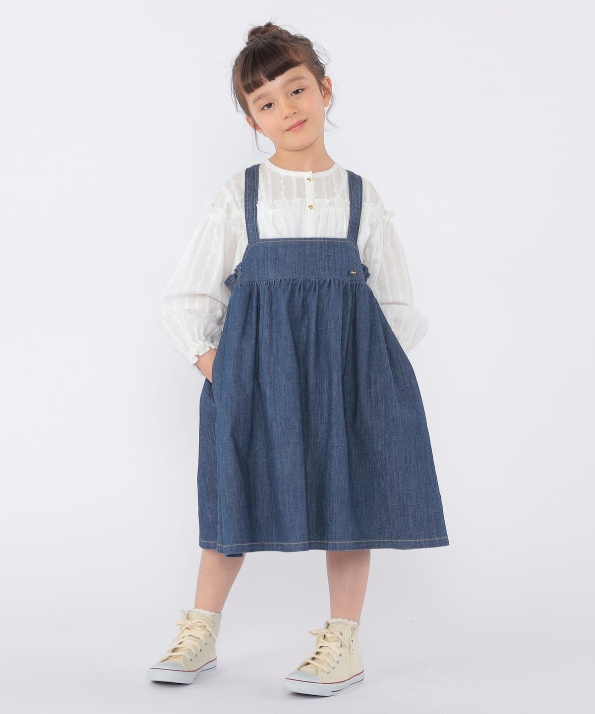 ふんわり広がるAラインシルエットと裾に挟み込んだハシゴレースでさりげない甘さもプラス。