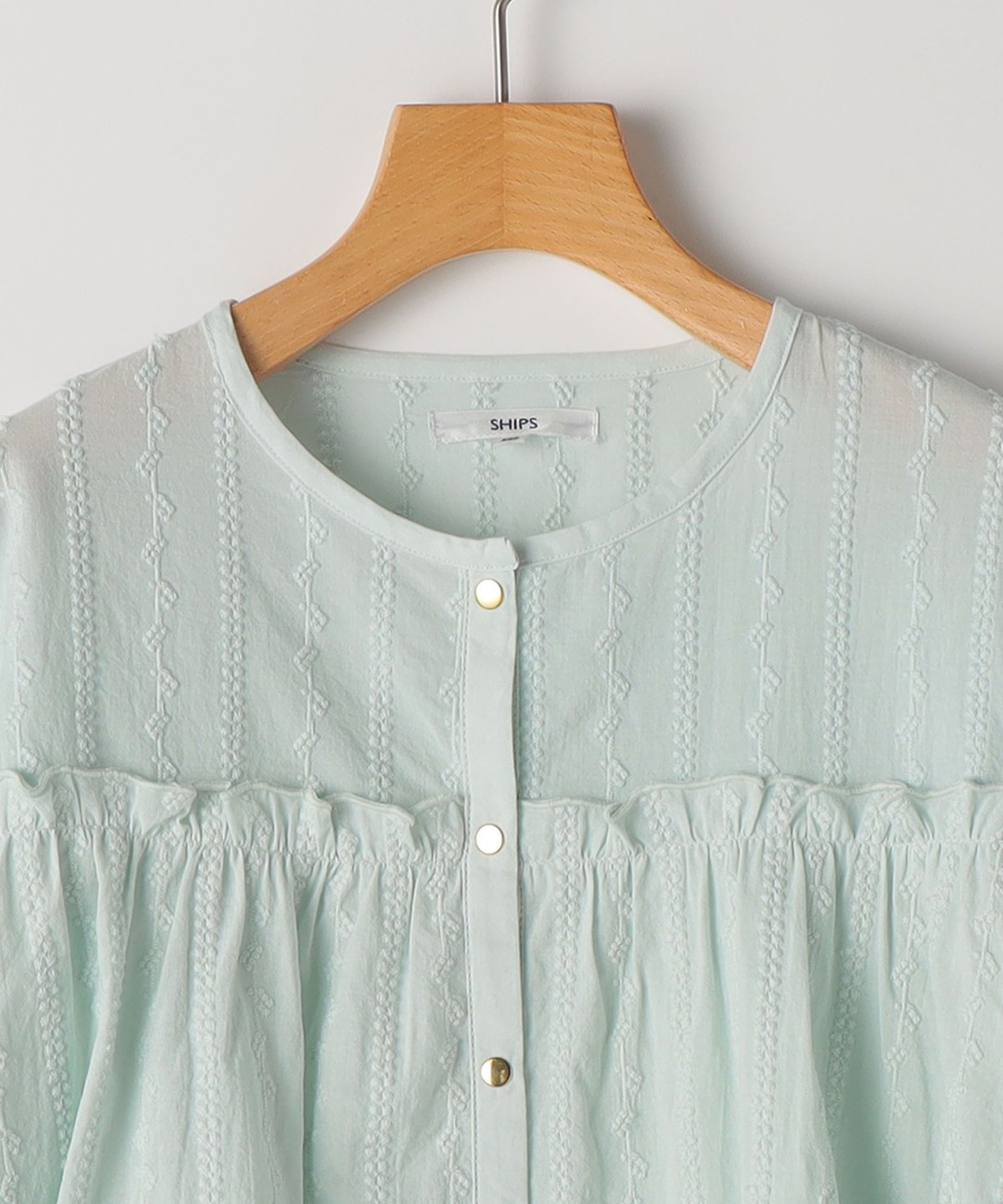 SHIPS KIDS:140〜150cm / ギャザーフリル 刺繍 ブラウス
