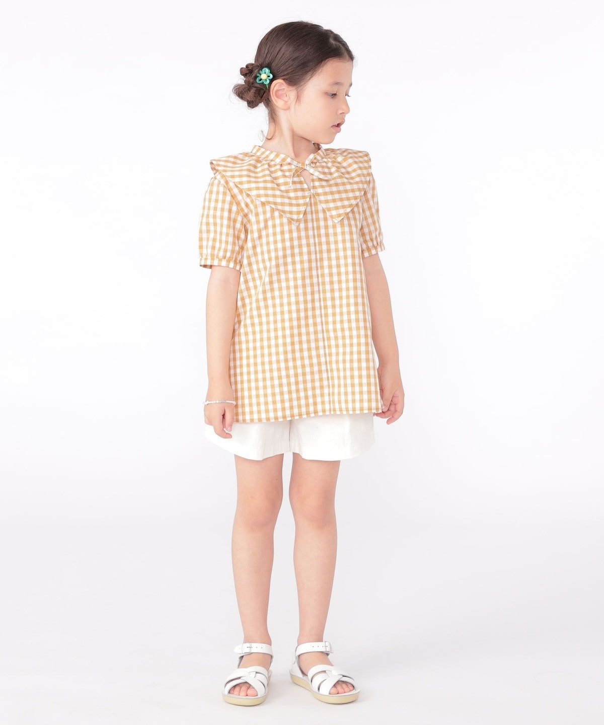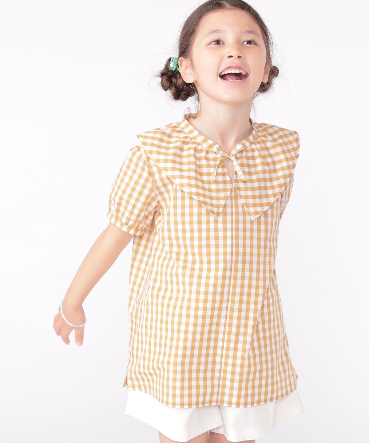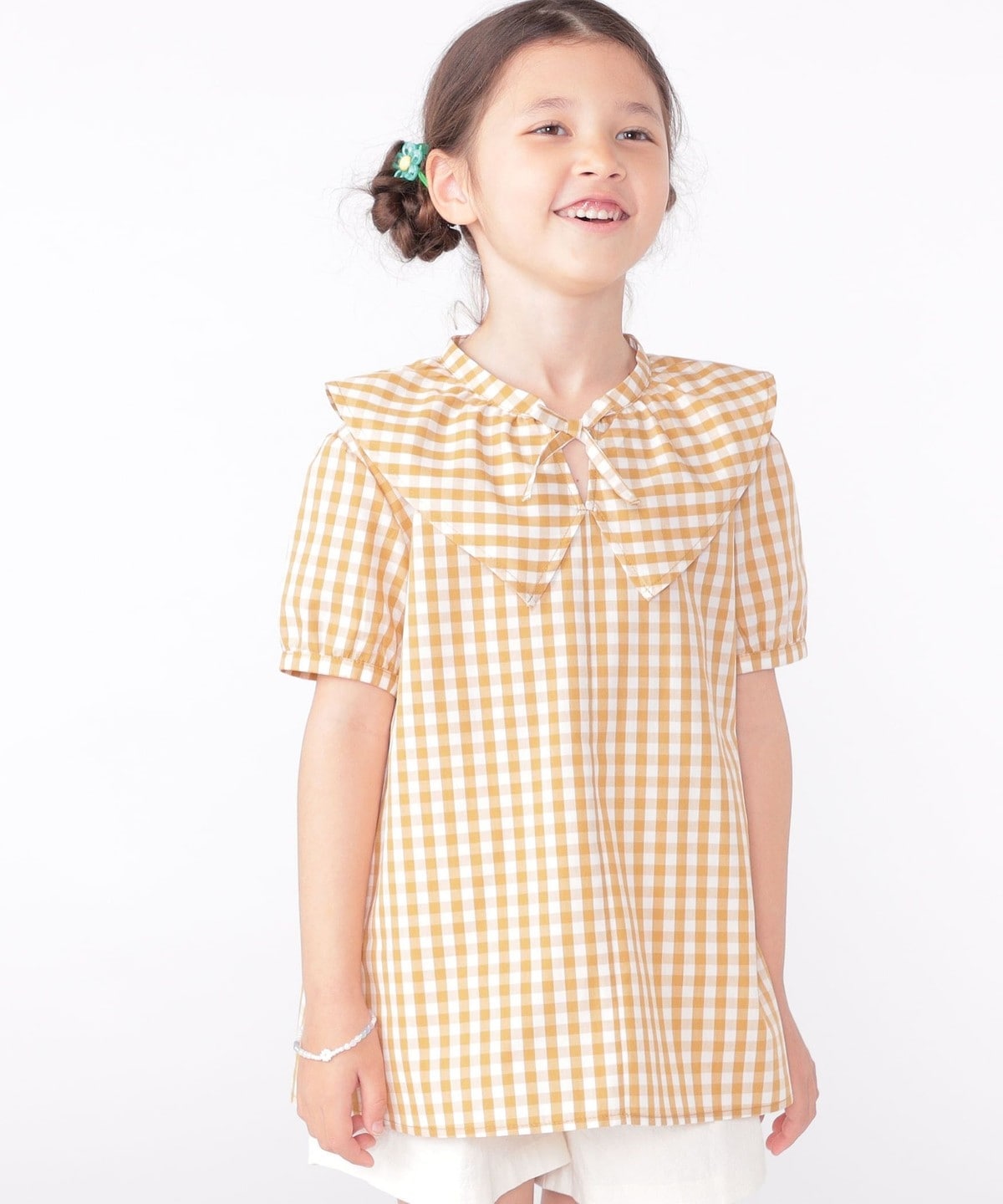 SHIPS KIDS:100〜130cm / ギンガムチェック 半袖 ブラウス
