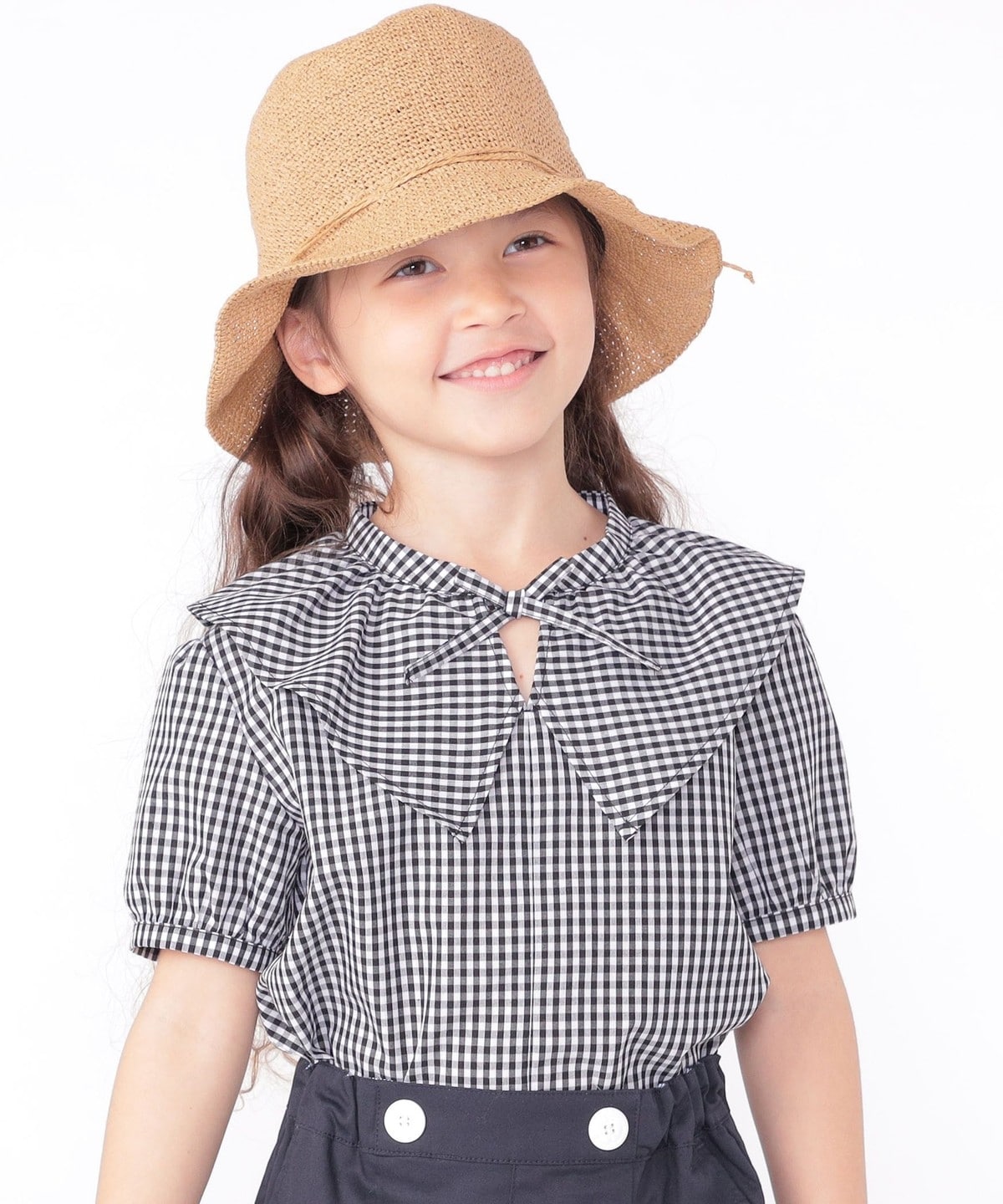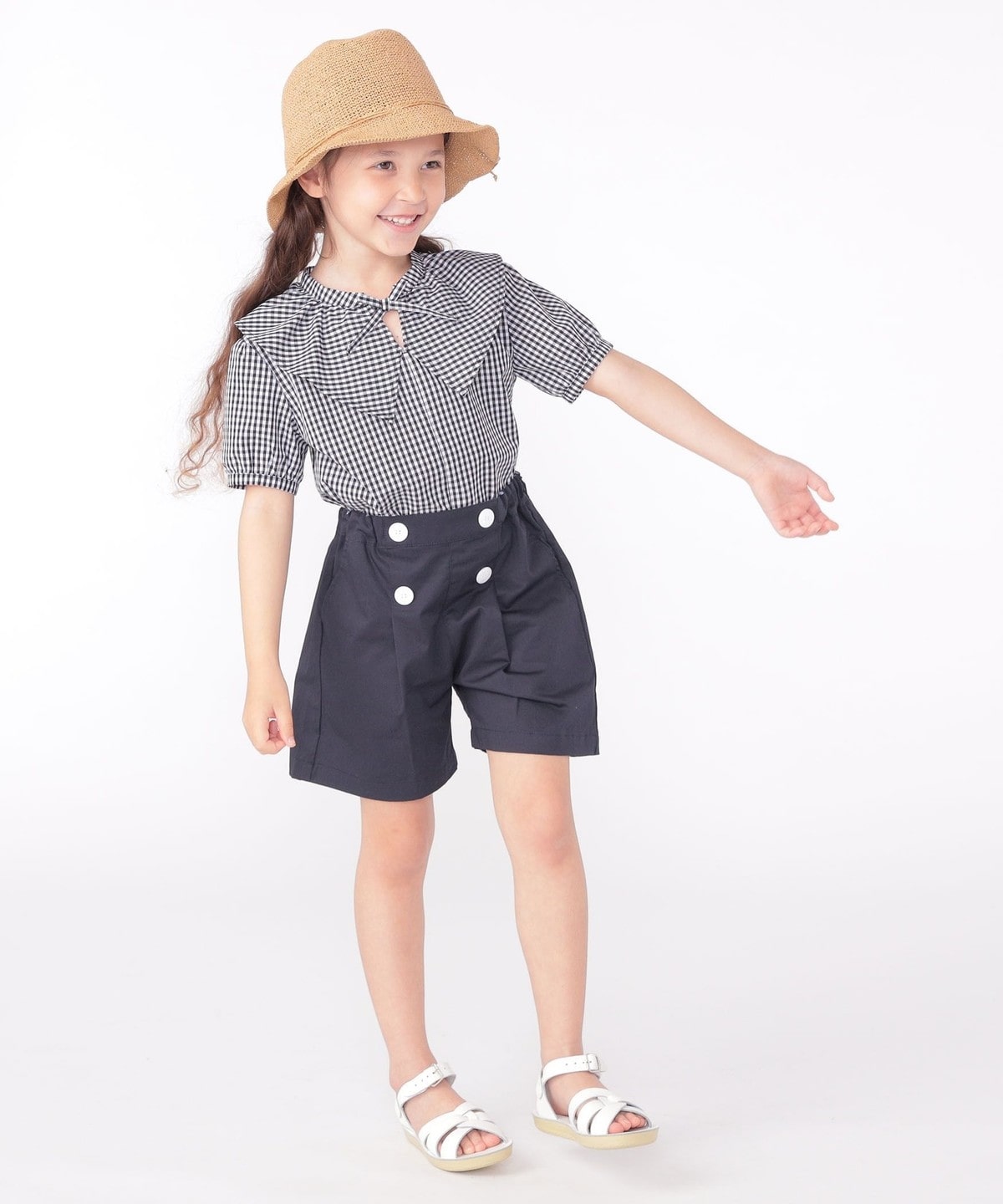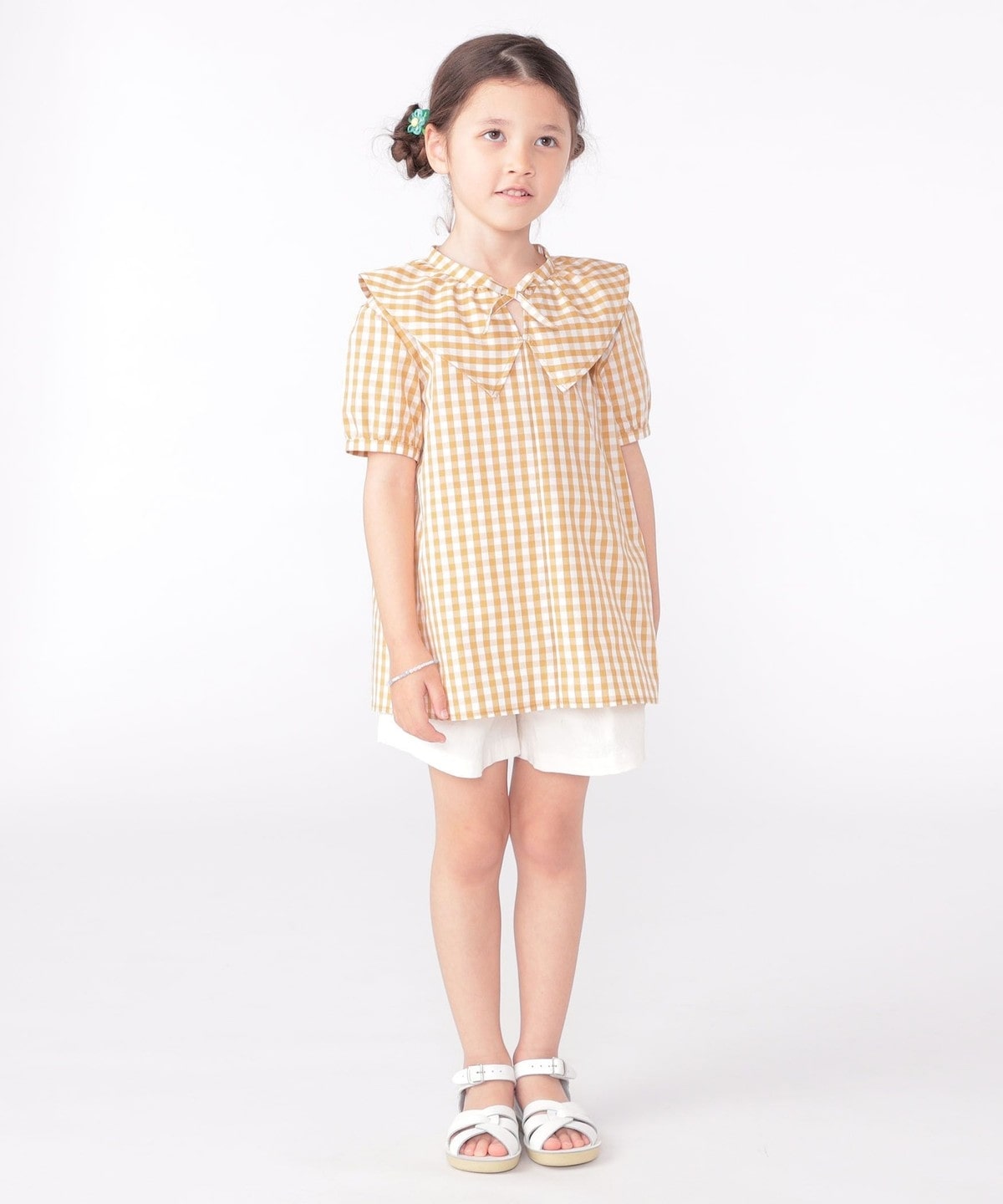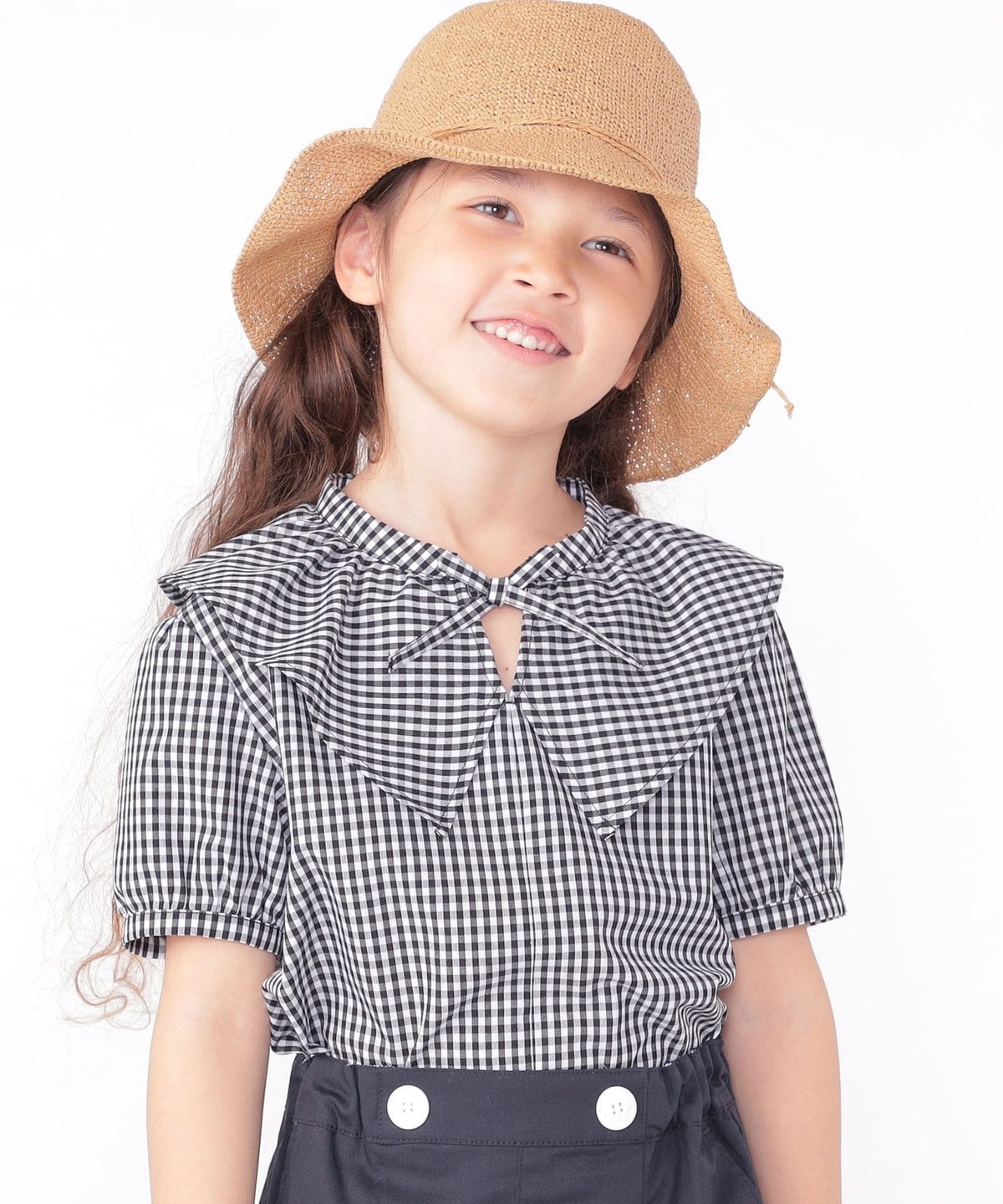 SHIPS KIDS:100〜130cm / ギンガムチェック 半袖 ブラウス