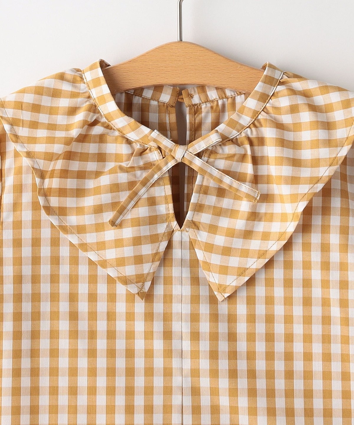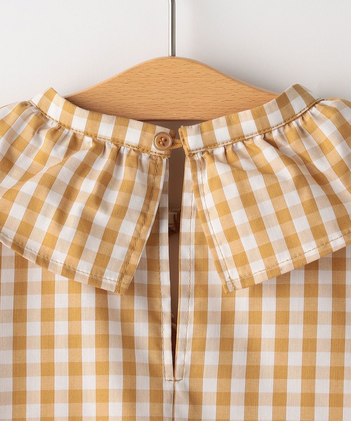 さりげないパフスリーブと、春夏ムードを高めるギンガムチェック柄がエレガントな印象に♪