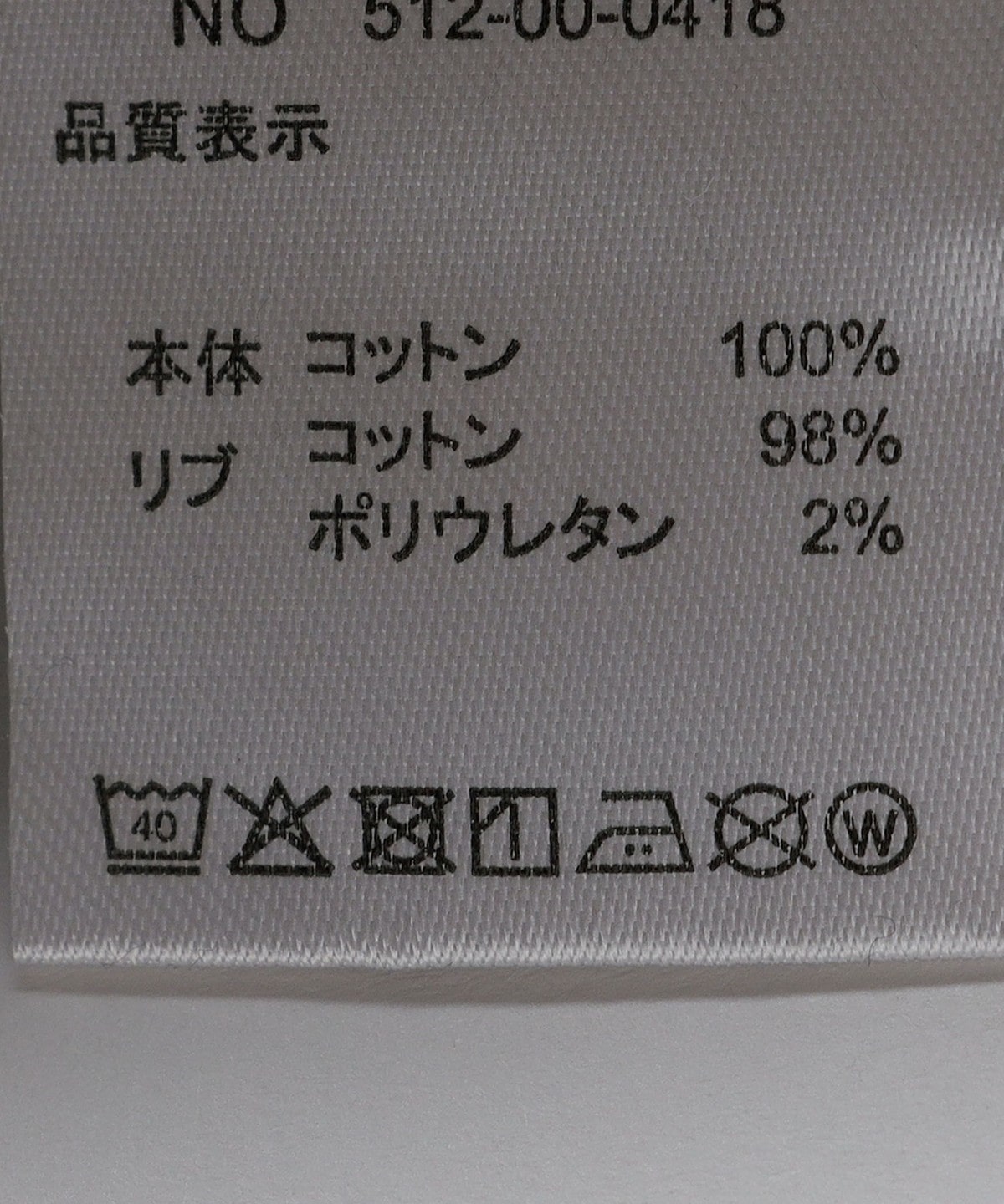 素材:本体: コットン100%, リブ: コットン98%, ポリウレタン2%