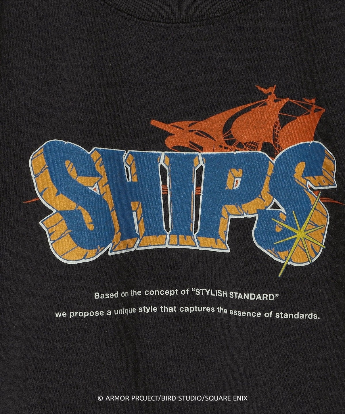 ドラゴンクエストシリーズのタイトルロゴをイメージしてデザインされた、SHIPSロゴのTシ