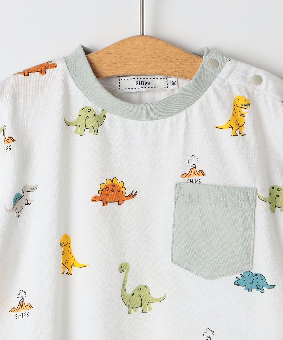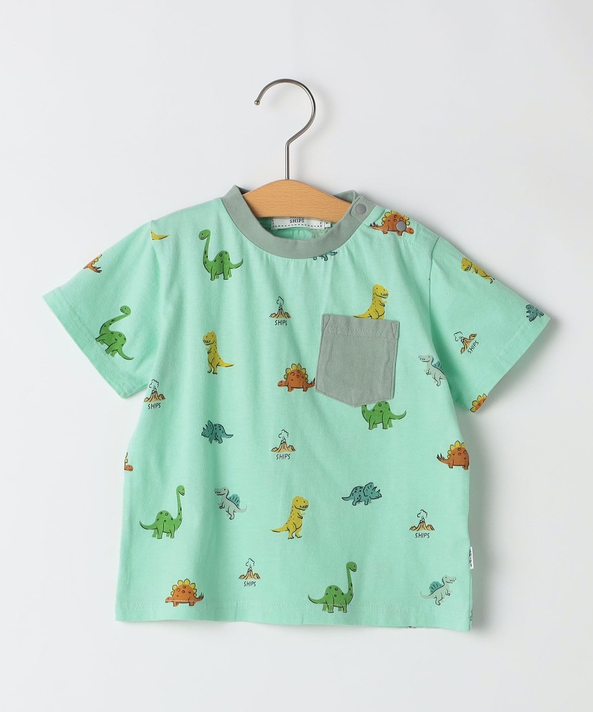 SHIPS KIDS:80〜90cm / 恐竜 テキスタイル 半袖 TEE