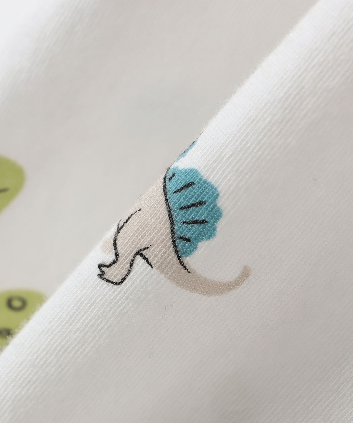 手書き風の可愛らしい恐竜をプリントした、恐竜好きにはたまらない総柄デザイン。