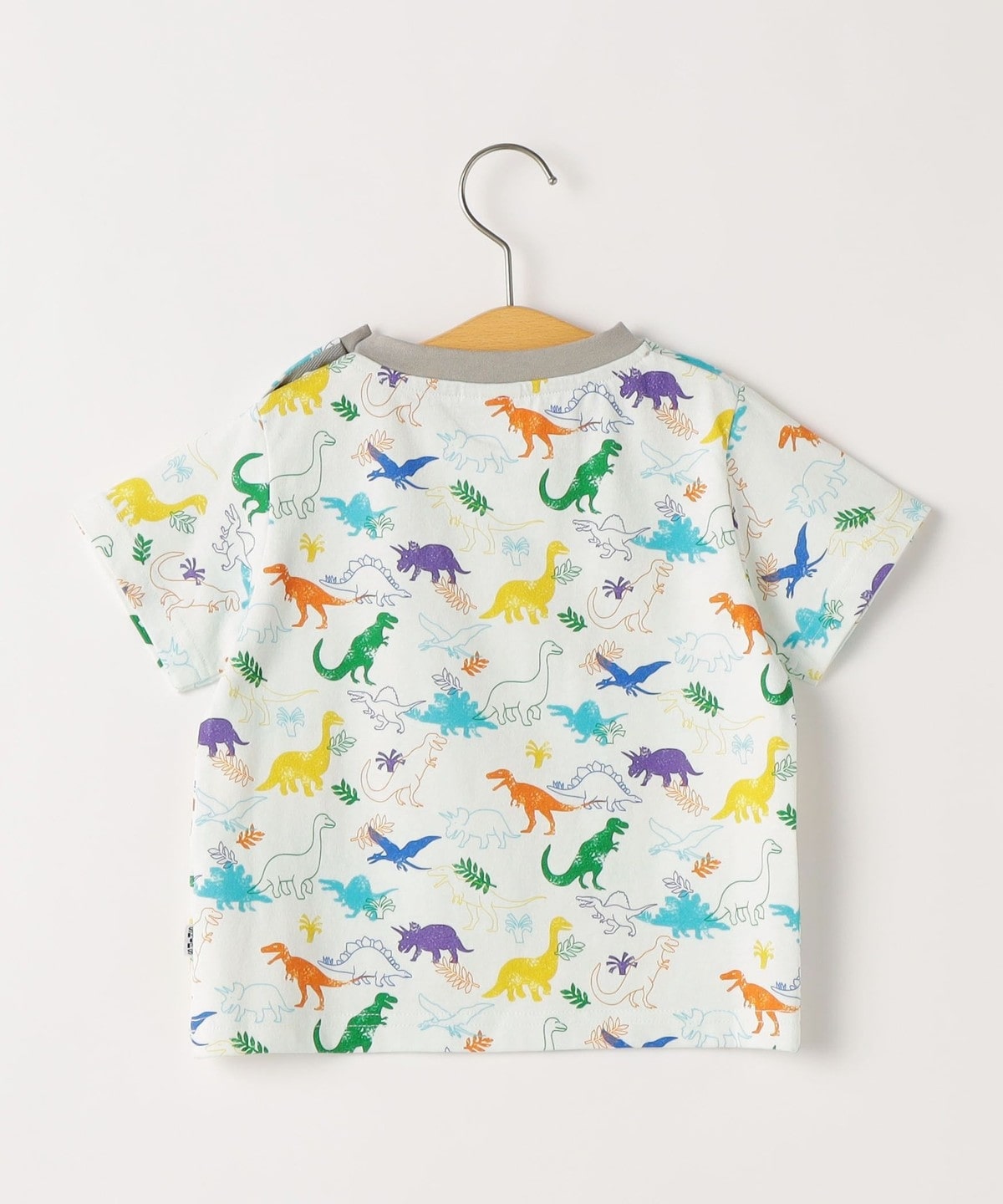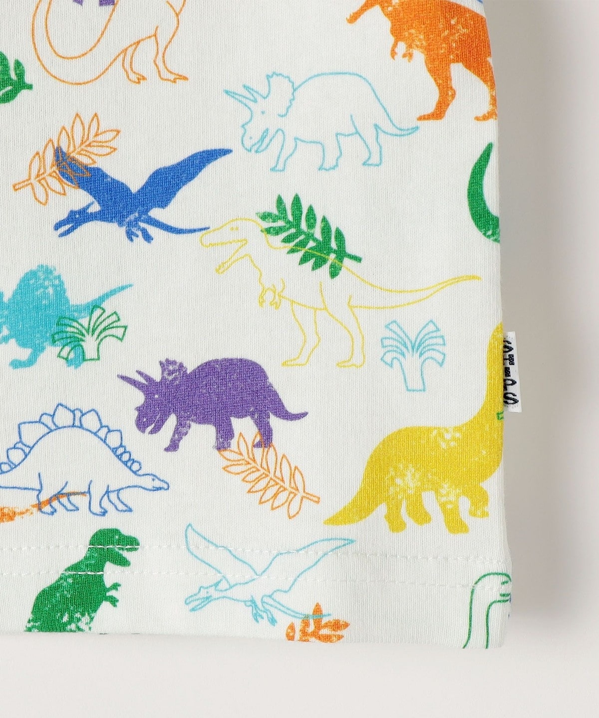 恐竜のプリントは線画タッチとハンコ風プリントを組み合わせた、動きのあるポップなデザインで元気なキッズにぴったり。