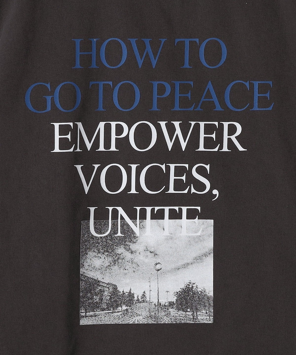 正面のインパクトのあるグラフィックは、”平和活動や社会活動”へのメッセージが込められています。