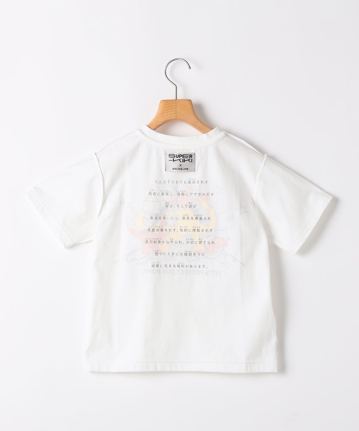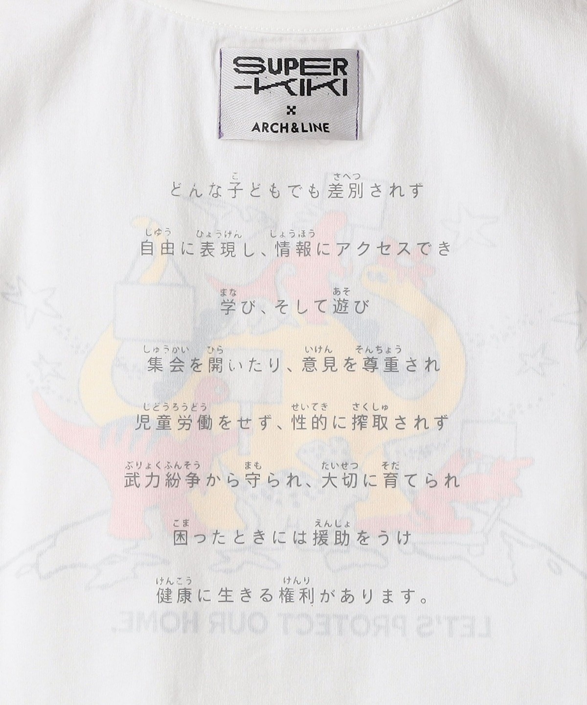 正面のグラフィックは、デザイナーのsuper-KIKIさんとのコラボデザインで”子どもの権利条約”をテーマにしています。
