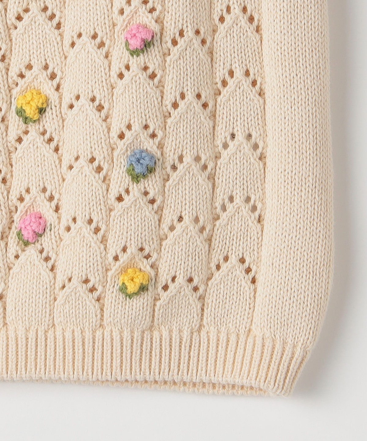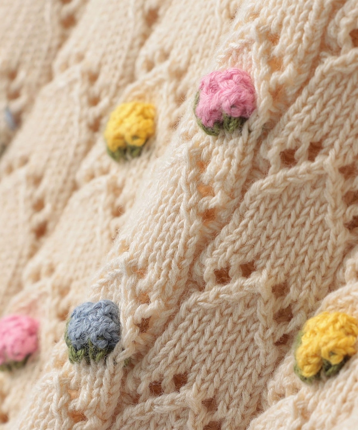 繊細な花のディテールをあしらった、繊細な立体感のあるクロップド丈のニットです。