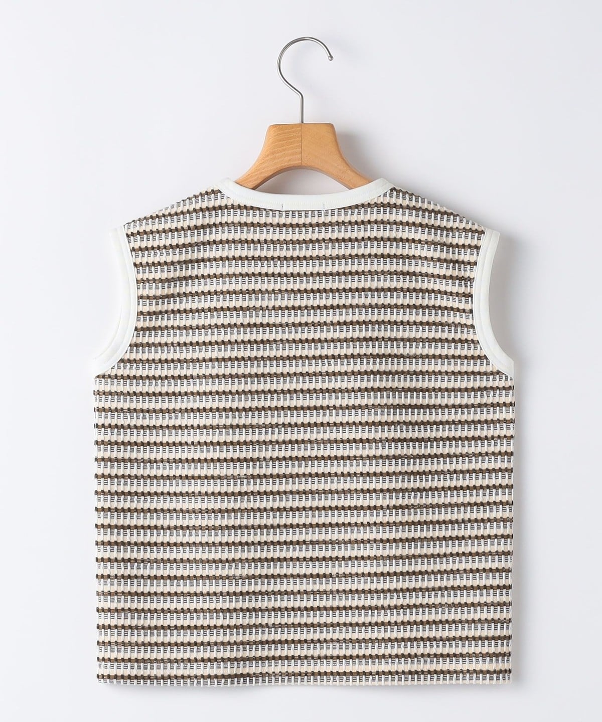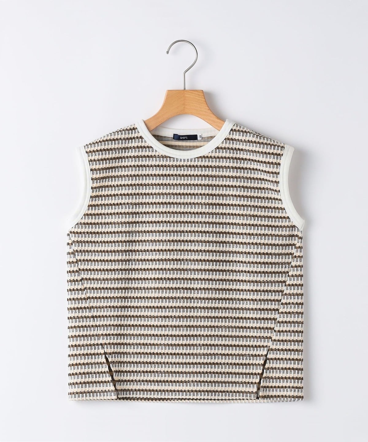 表情豊かなジャカード素材がアクセントになるノースリーブカットソー
