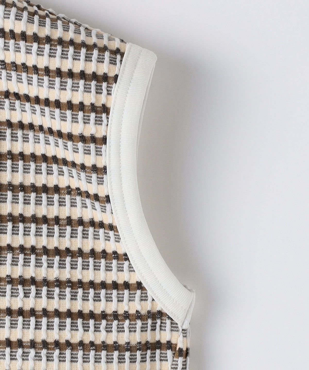 表情豊かなジャカード素材がアクセントになるノースリーブカットソー