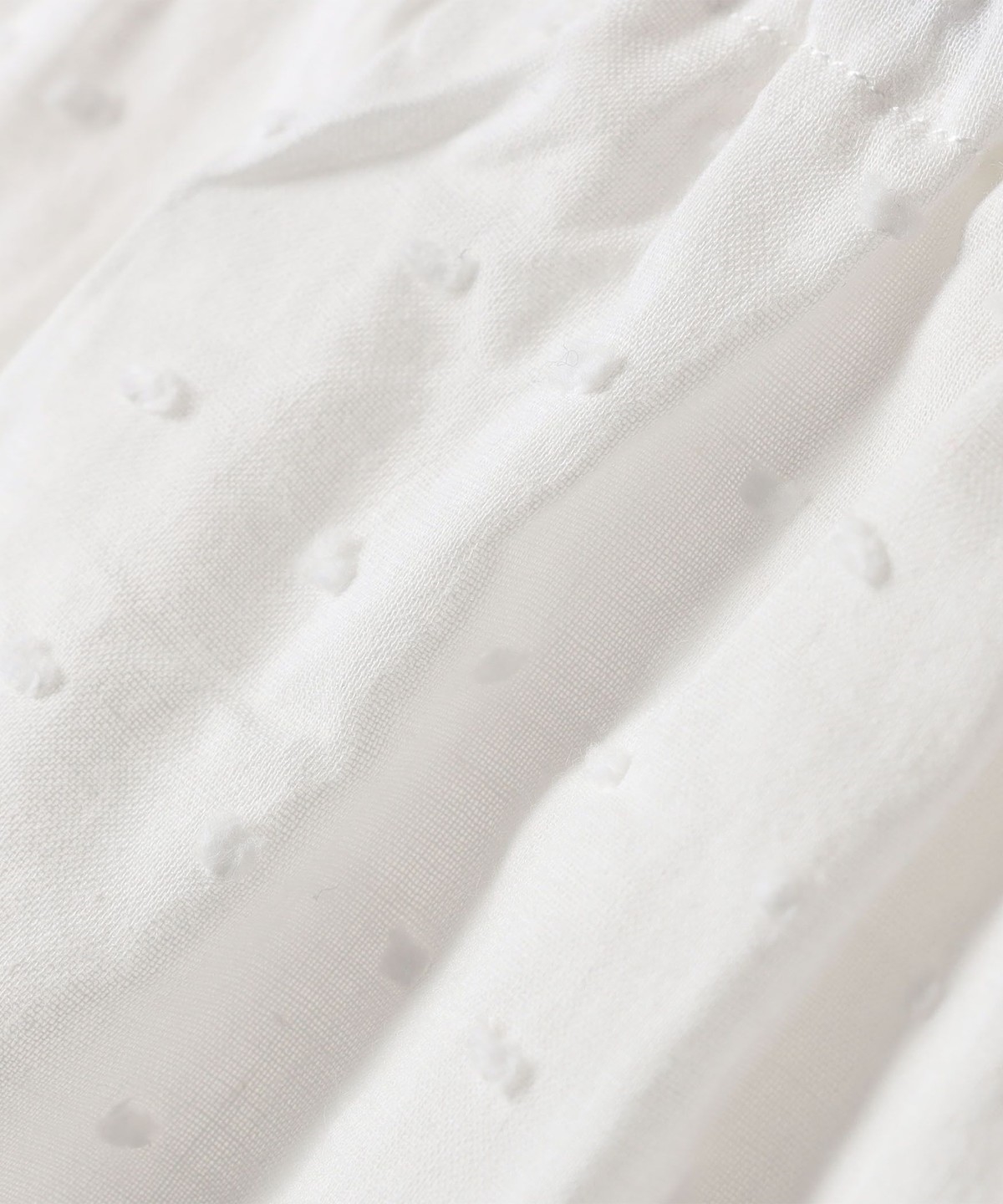 やわらかなドットジャカード素材を使用したベビーのセットアップ。