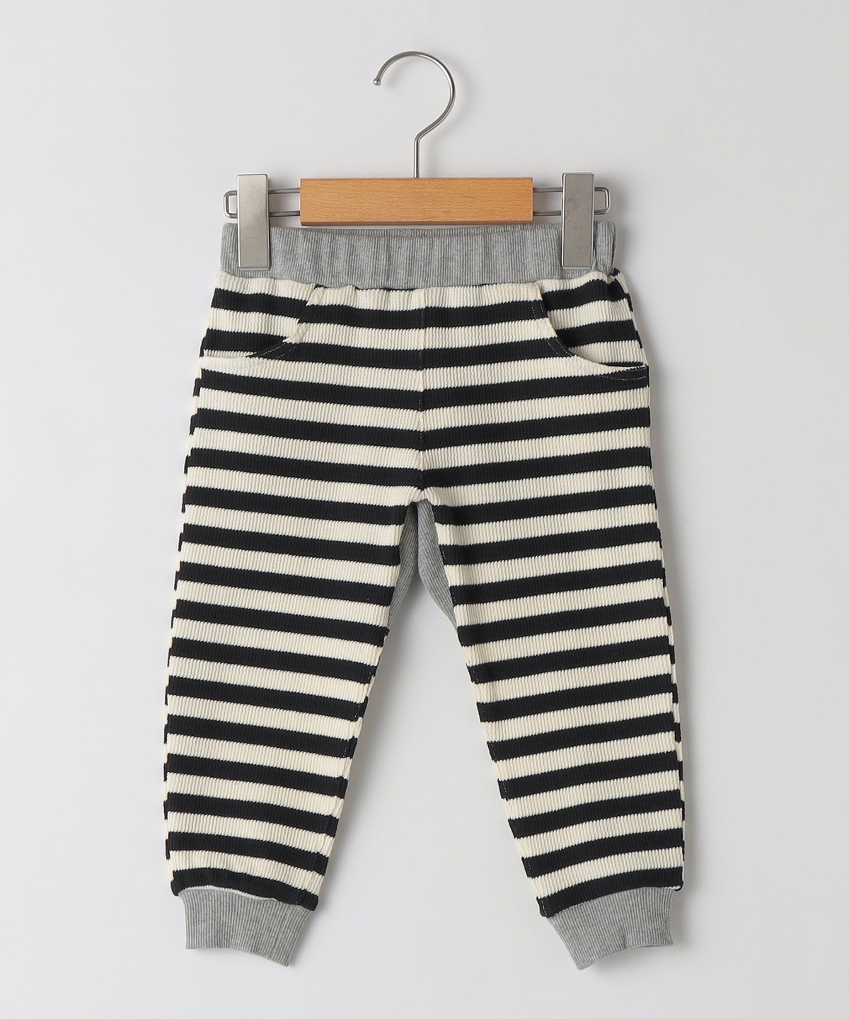 柔らかなボーダー柄が可愛らしいベビーパンツ