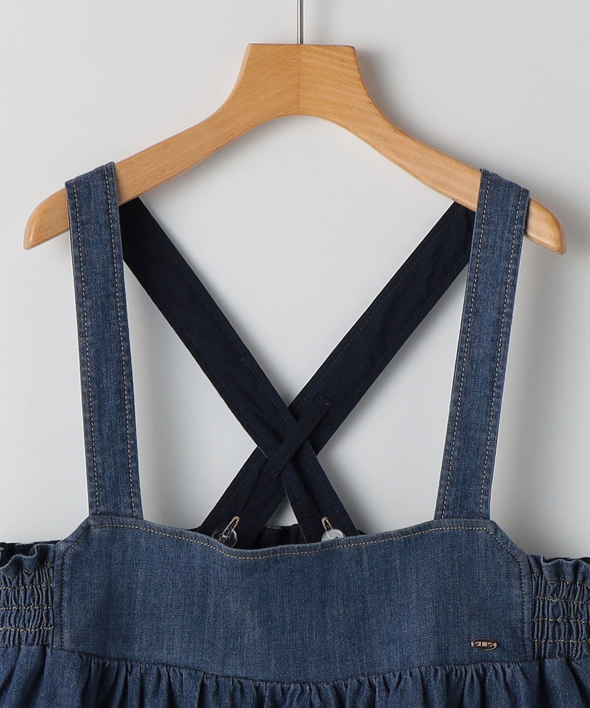 軽くてしなやかな5.7ozのライトオンスデニム素材を使用したジャンパースカート。