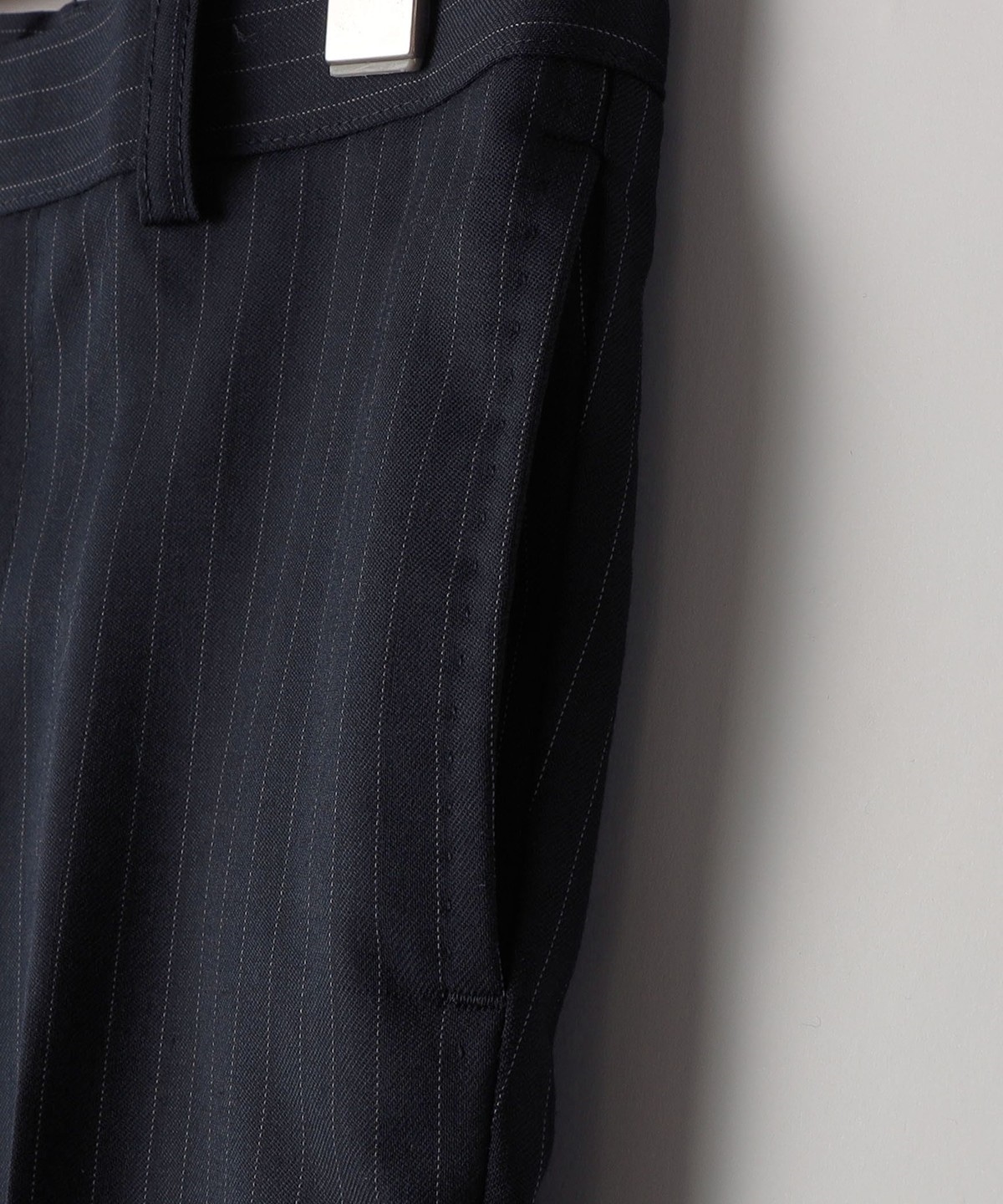 やや細身のシルエットときれいめなストライプ柄がスマートでスタイリッシュな印象を演出してくれます。