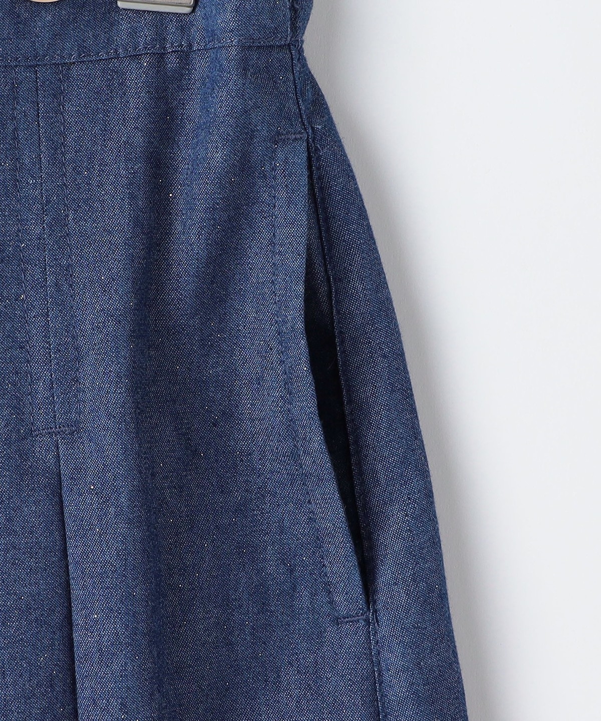 薄手のインディゴ素材にラメプリントを施したプリーツキュロット。