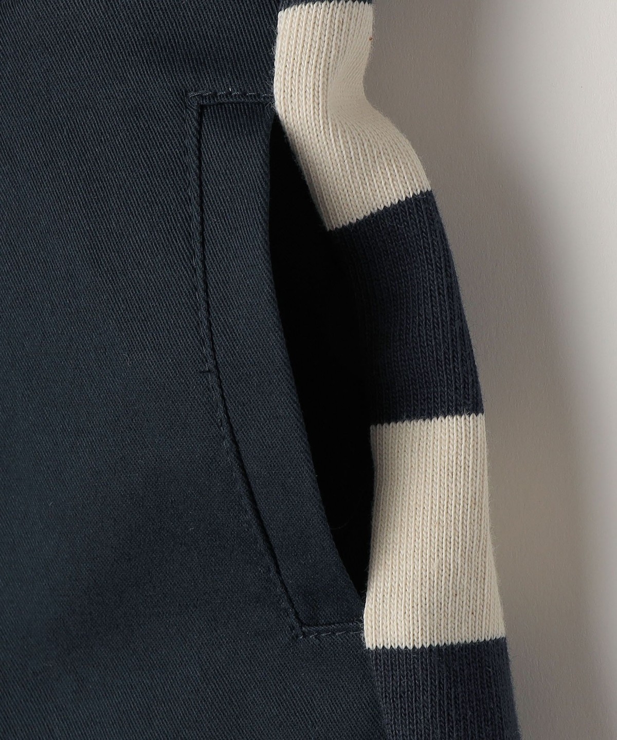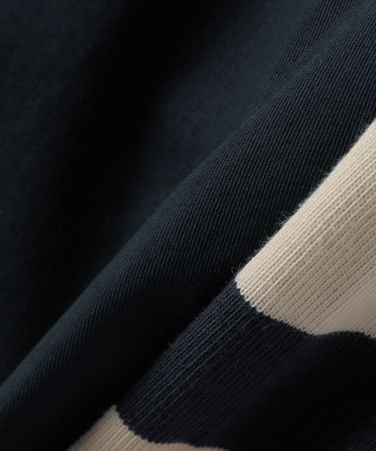 バックスタイルは存在感のある太ボーダーで、前後で表情の違う素材が遊び心溢れる一枚です。