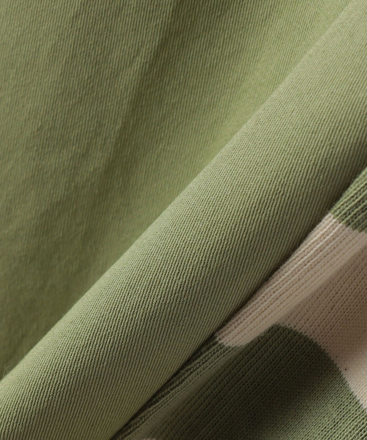 前身頃は程よくハリ感のある布帛素材、後ろ身頃はカットソー生地を使用。