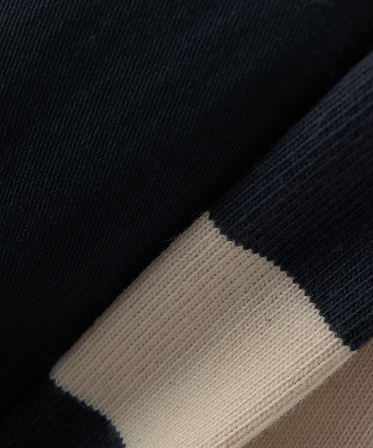 バックスタイルは存在感のある太ボーダーで、前後で表情の違う素材が遊び心溢れる一枚です。