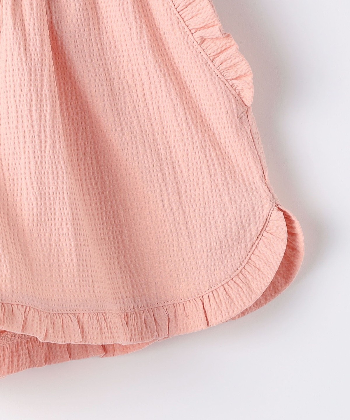 ドライタッチ素材のフリルがキュートなショートパンツ