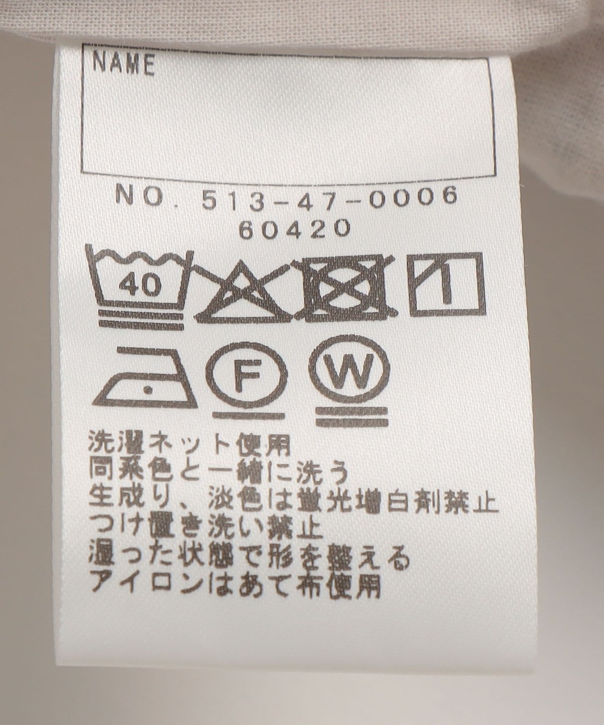 ※末永く愛用頂く為に、アテンションタグ・洗濯ネームを必ずご確認の上、着用又はお取り扱いください。