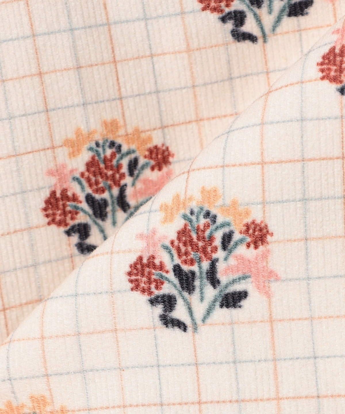 全体にフラワープリントをあしらい、袖口や裾、フードまで縁取られた繊細なレースもポイントです。