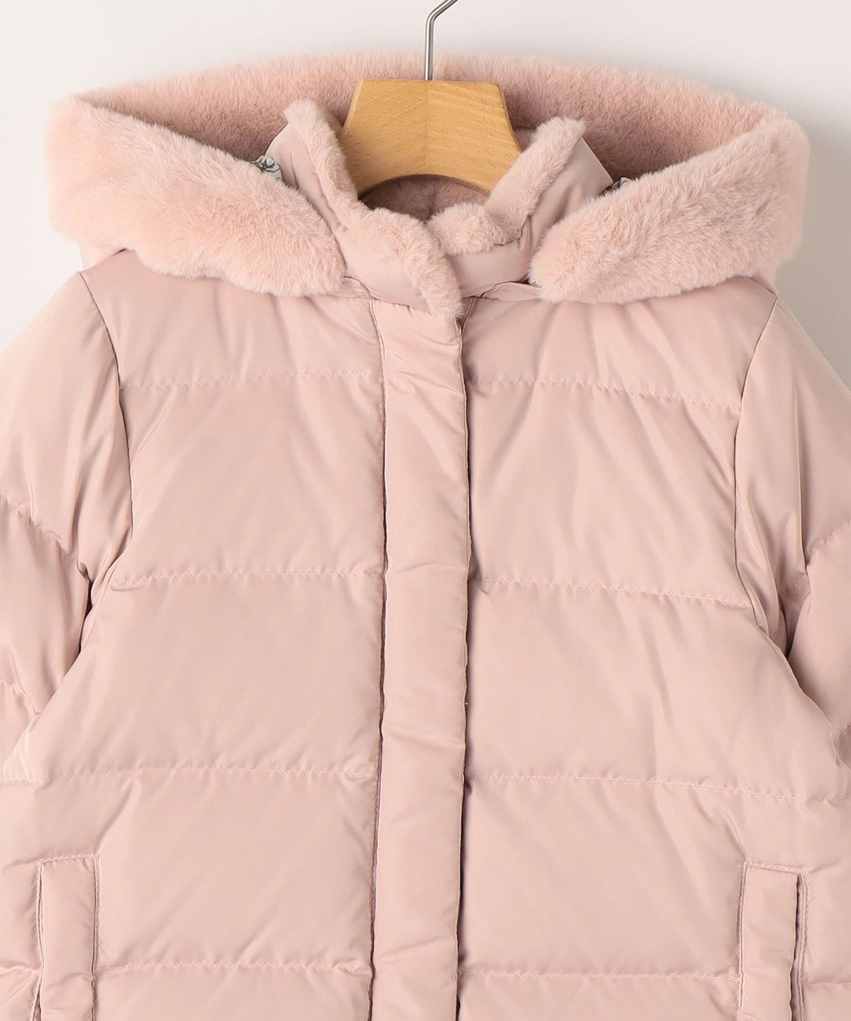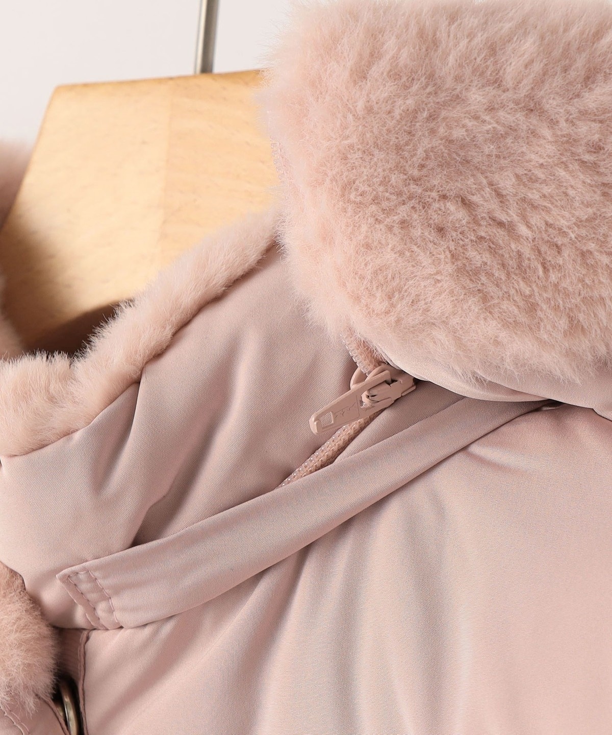 素材:表側: ポリエステル100%, 裏側: ポリエステル100%, 中わた: ダウン80%, フェザー20%, ファー: ポリエステル100%, 別布:コットン100%