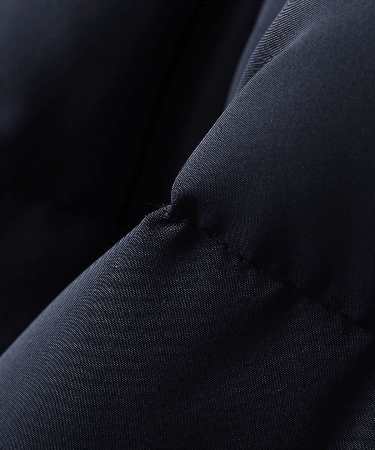 甘くなり過ぎないすっきりとしたストレートなシルエットに微光沢なタフタ素材を使用した上品なエコダウン。