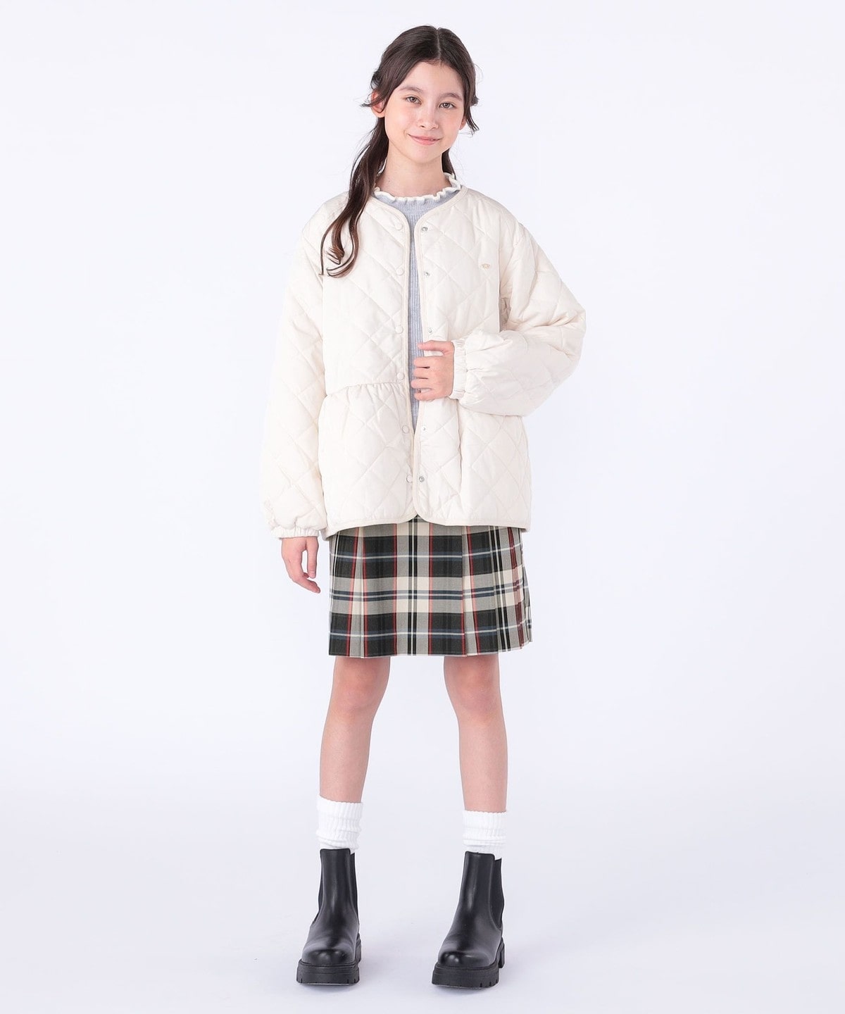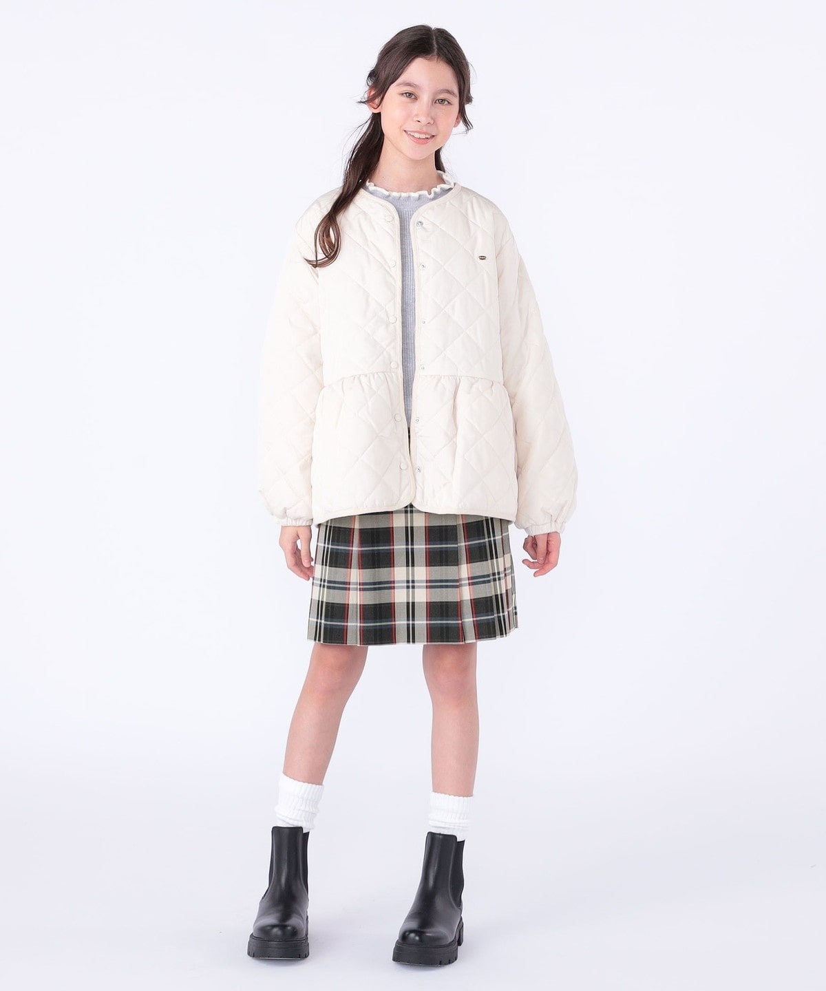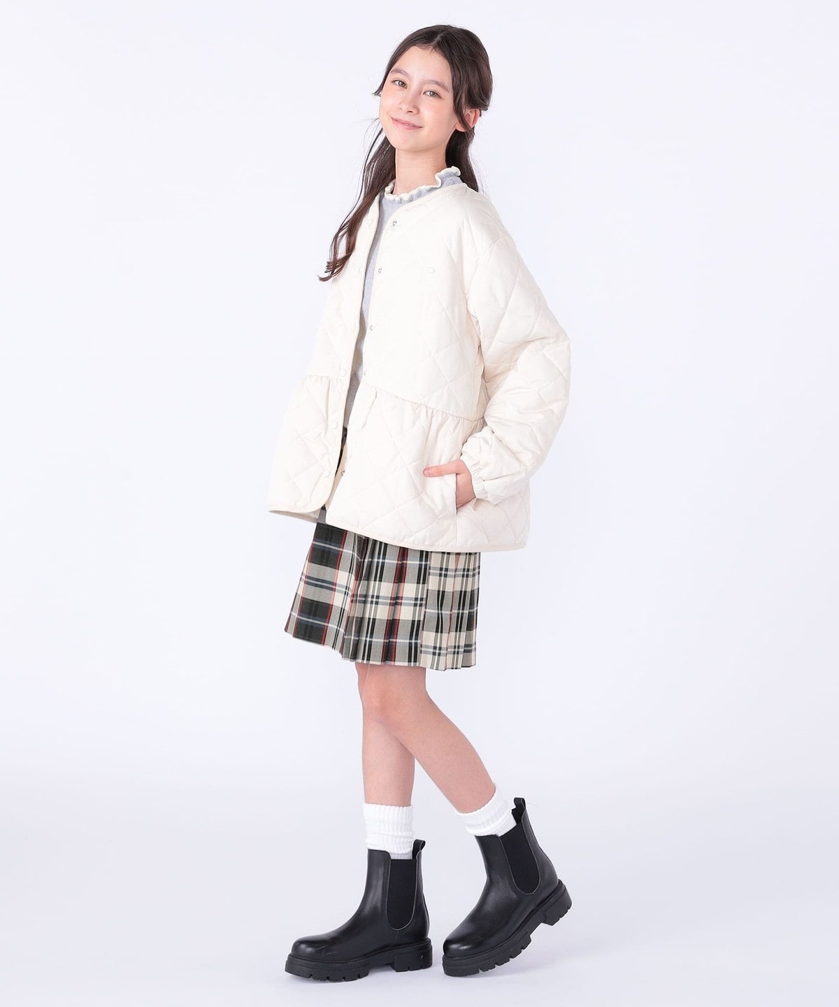 1. SHIPS KIDS:140〜150cm /〈洗濯機可能〉 キルト ペプラム ジャケット アイボリー