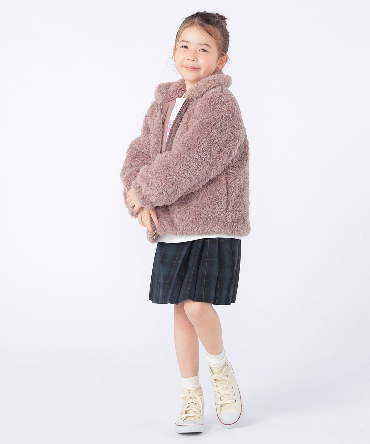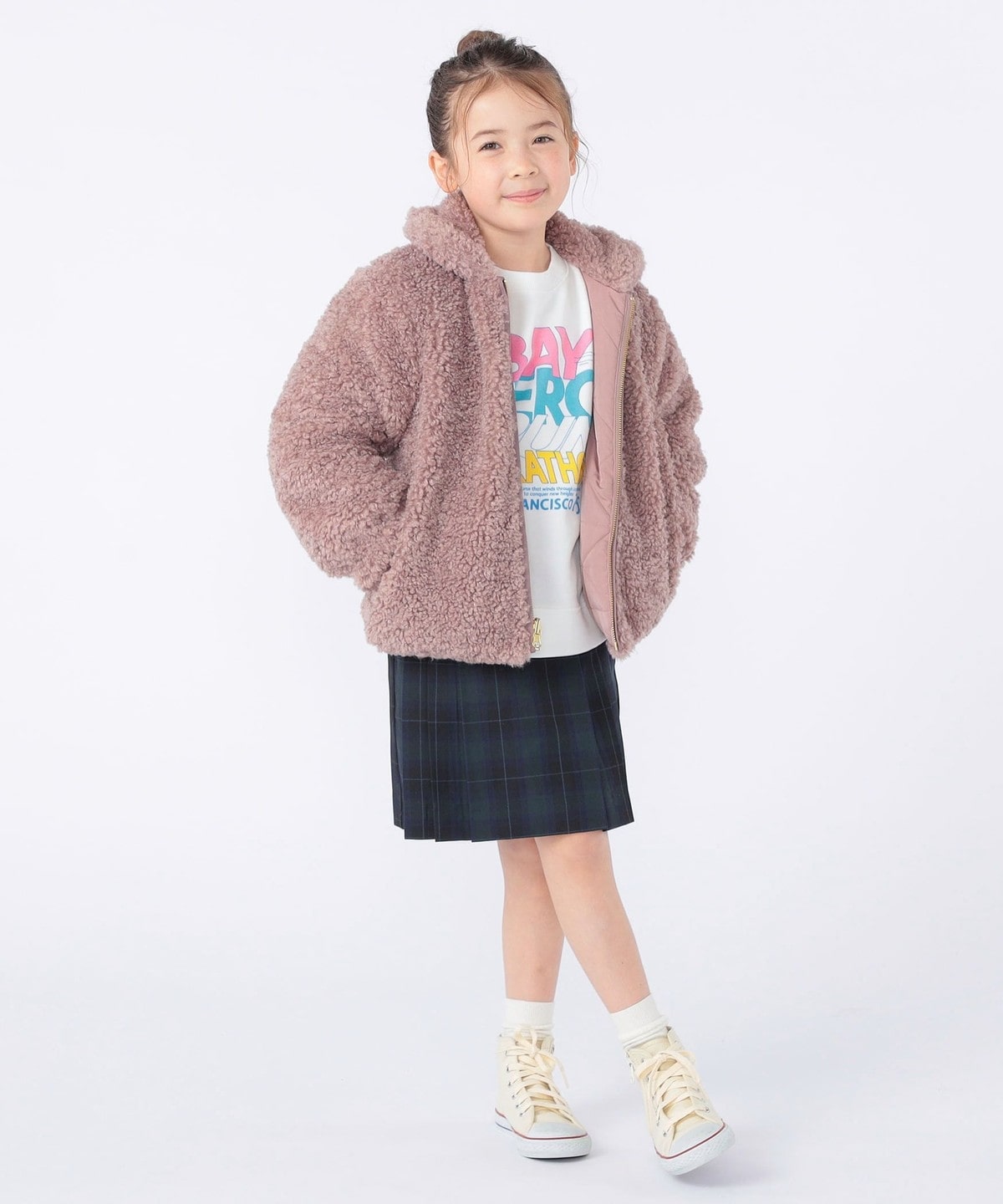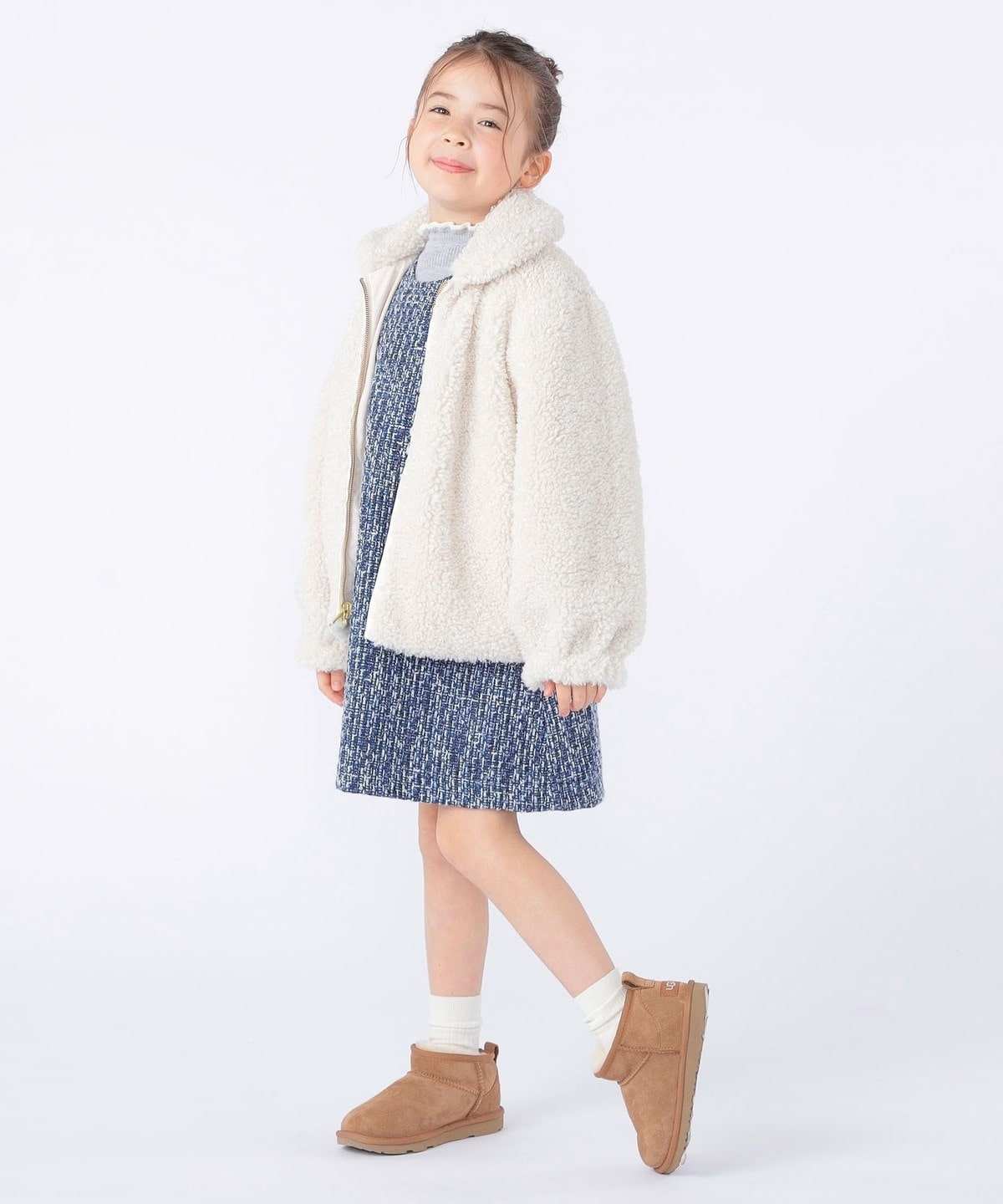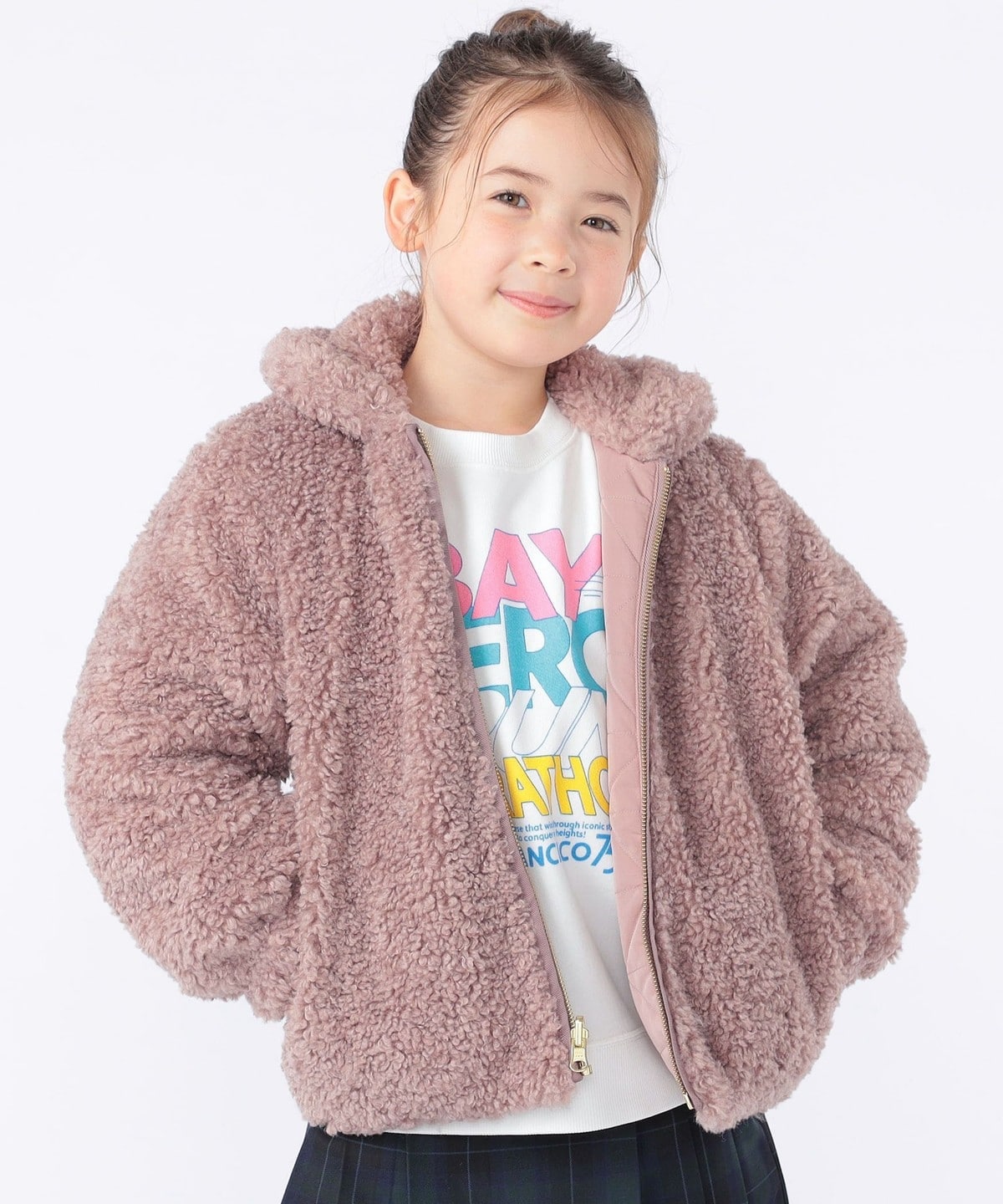 SHIPS KIDS:100〜130cm / プードルファー×タフタ リバーシブル ジャケット