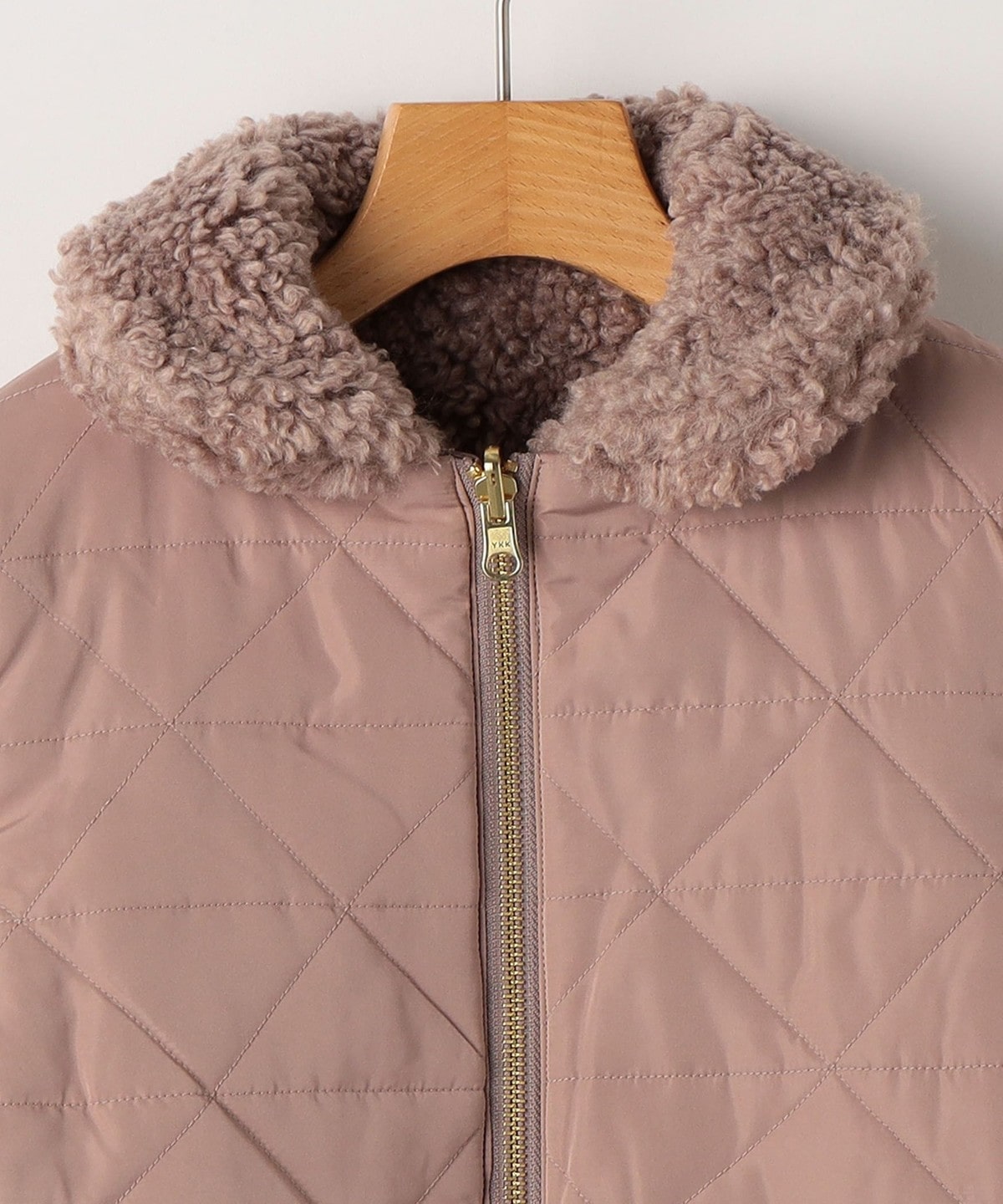 タフタ面には幾何柄のステッチを施し、軽量で柔らかなボア面は今季はより細かいカールボアを使用しブラッシュアップ!着膨れしずらくコンパクトに着ていただけます◎