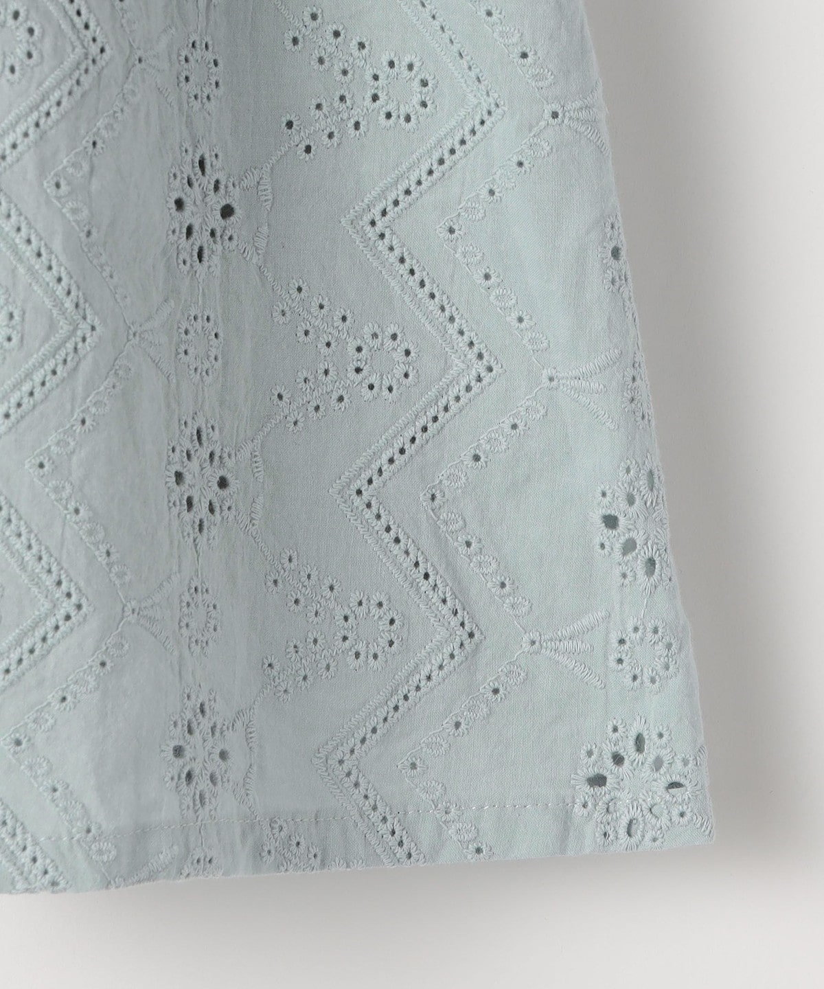 ふんわりと軽やかな薄手のローン素材に繊細なレース刺繍を施した表情豊かな一枚。